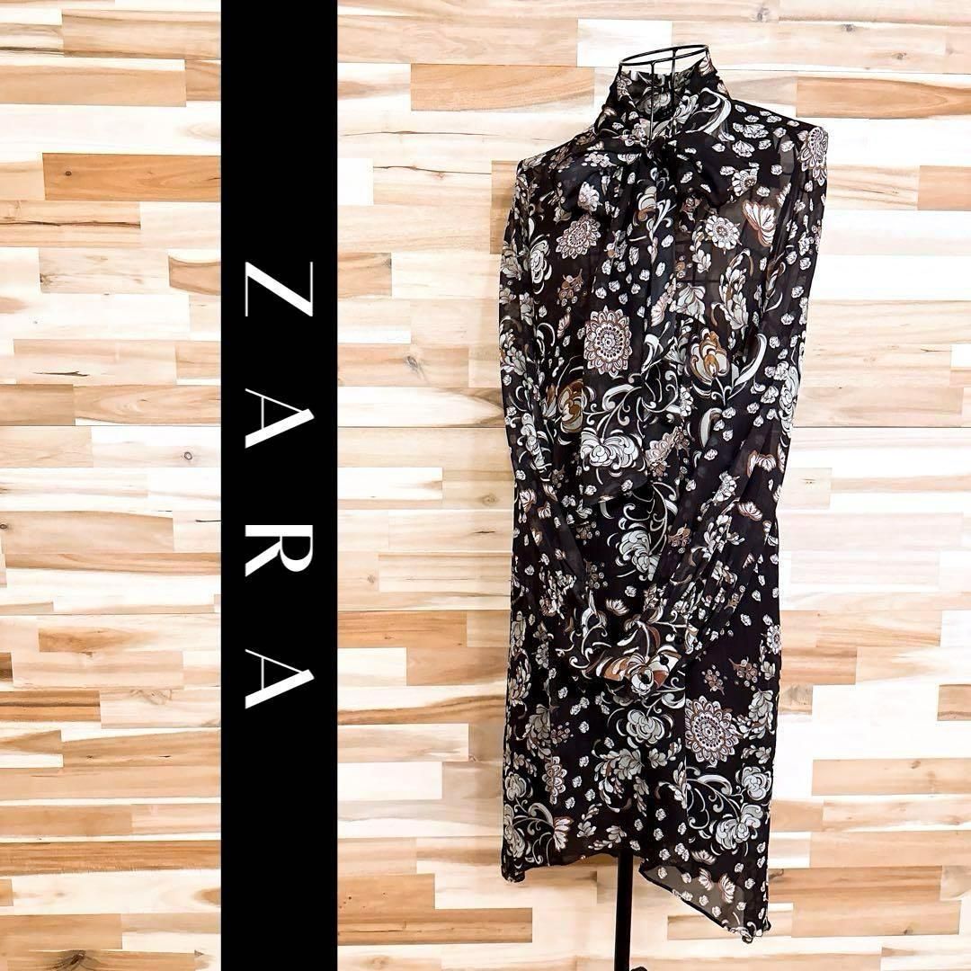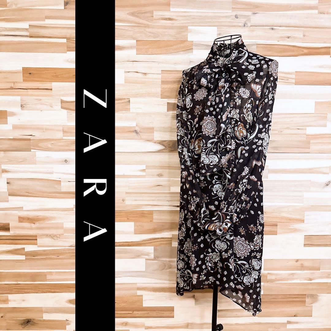 大人っぽく上品さのあるボタニカル柄プリント。ふわりとしたシフォン素材が女性らしさを惹き立ててくれるZARA WOMANのワンピースです。