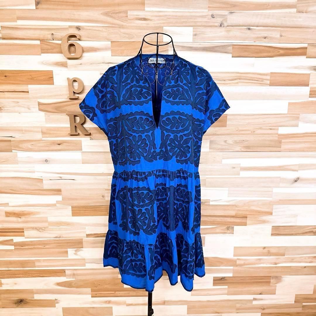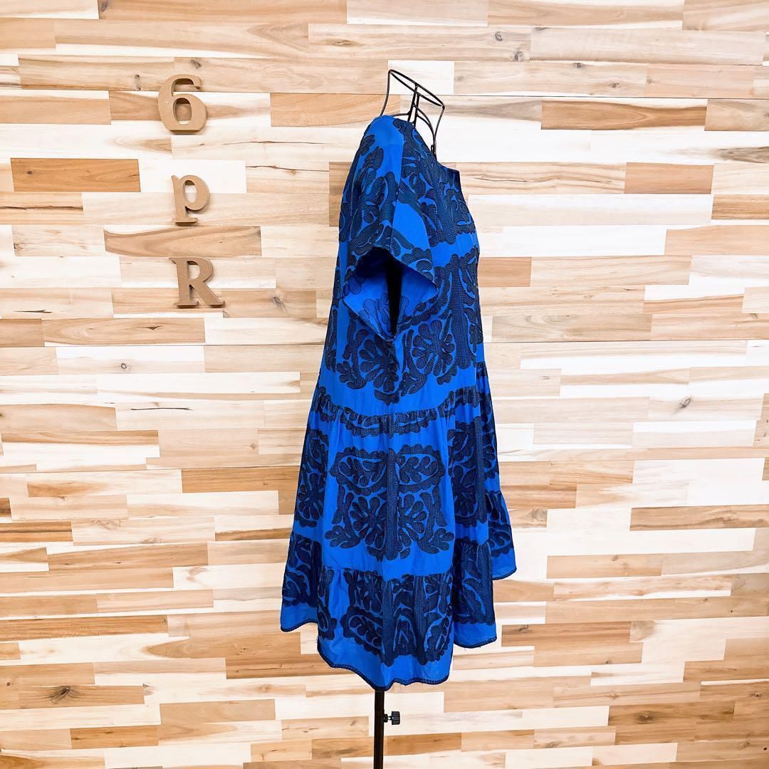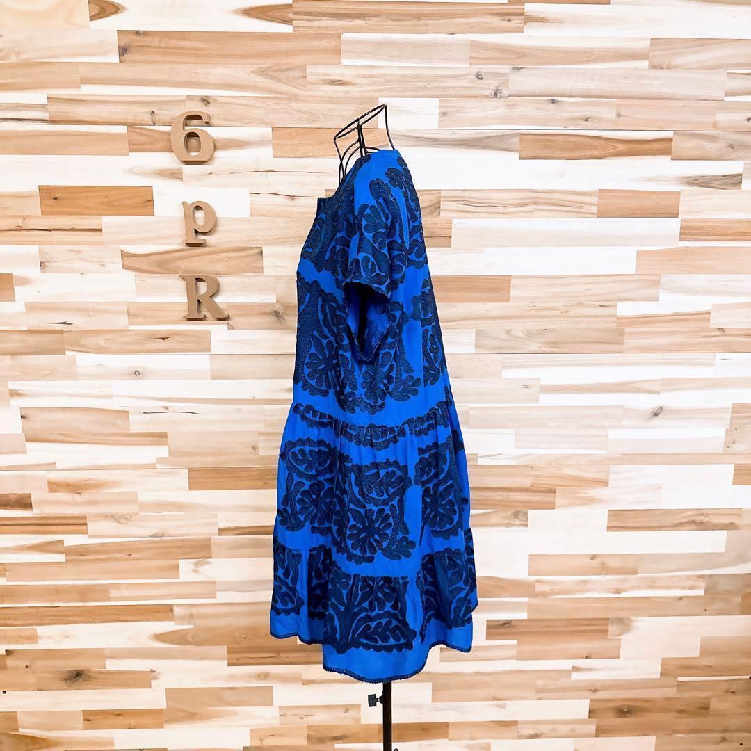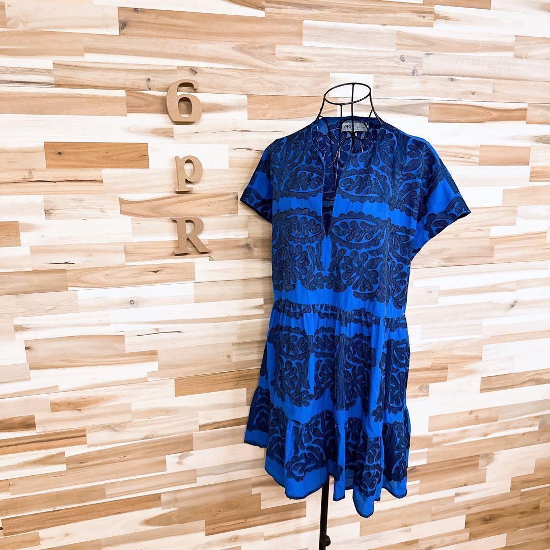 * ボタニカル / 葉っぱ *薄手の軽やかな素材感で、輪郭が引き立つ立体的な一着。深めのブルーをベースに、リーフモチーフのブラック刺繍が繊細な陰影を生むデザイン。すっきりと開いたスキッパーネックが顔まわりをシャープに見せ、抜け感を演出してくれるZARAのワンピースです。※LGスタイラーにて除菌リフレッシュ・スチームクリーニング済みです。