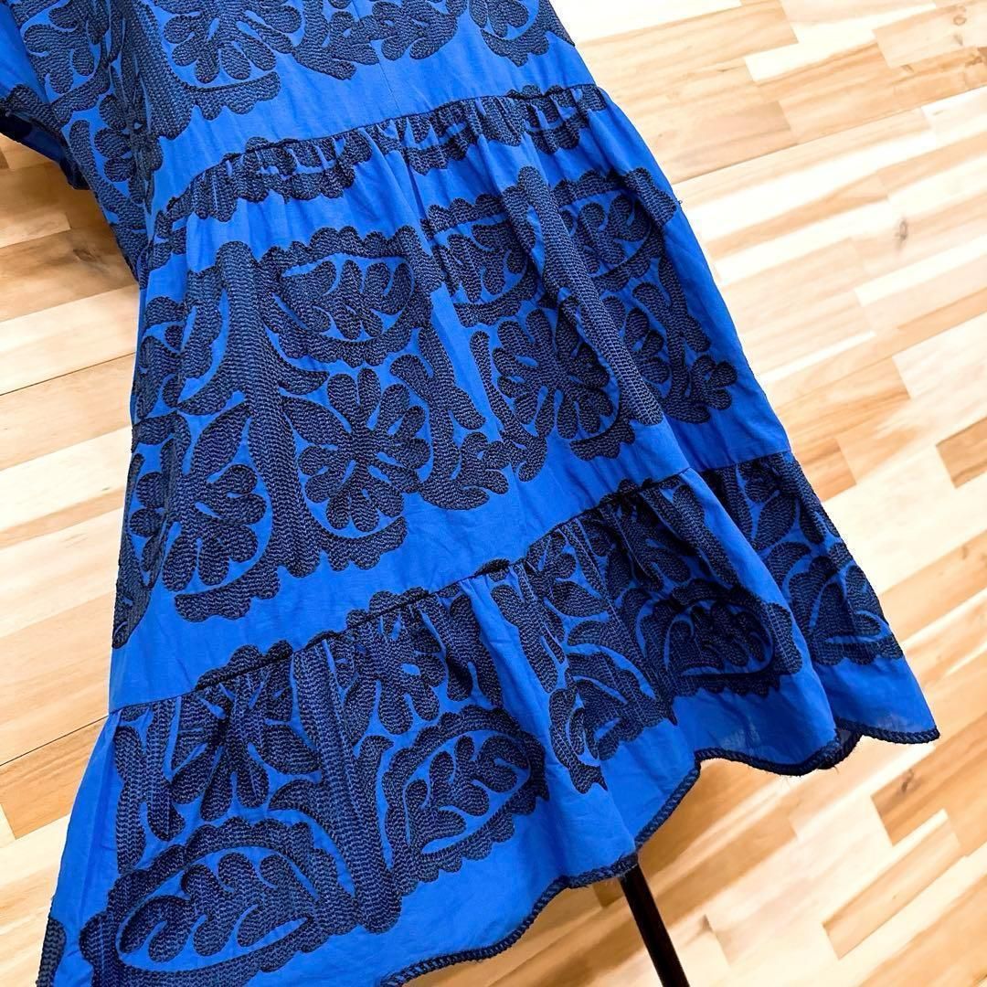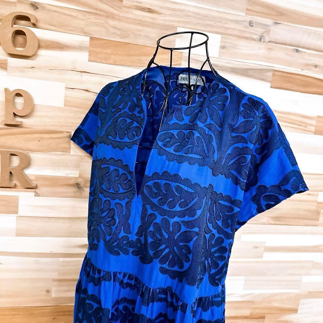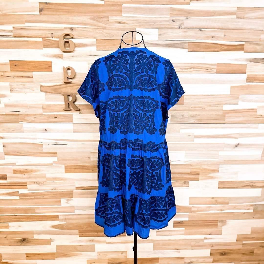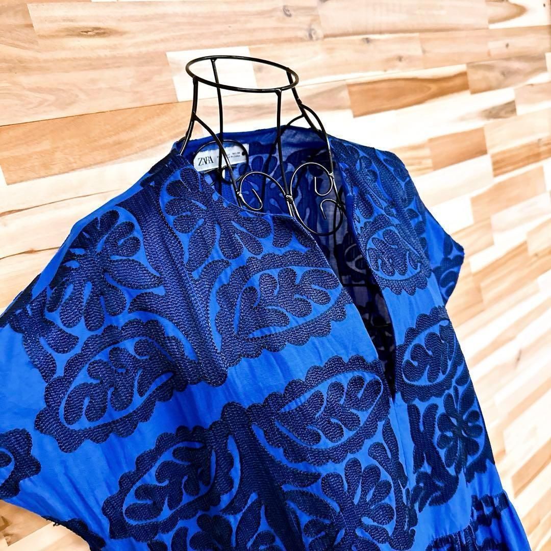 * ボタニカル / 葉っぱ *薄手の軽やかな素材感で、輪郭が引き立つ立体的な一着。深めのブルーをベースに、リーフモチーフのブラック刺繍が繊細な陰影を生むデザイン。すっきりと開いたスキッパーネックが顔まわりをシャープに見せ、抜け感を演出してくれるZARAのワンピースです。※LGスタイラーにて除菌リフレッシュ・スチームクリーニング済みです。