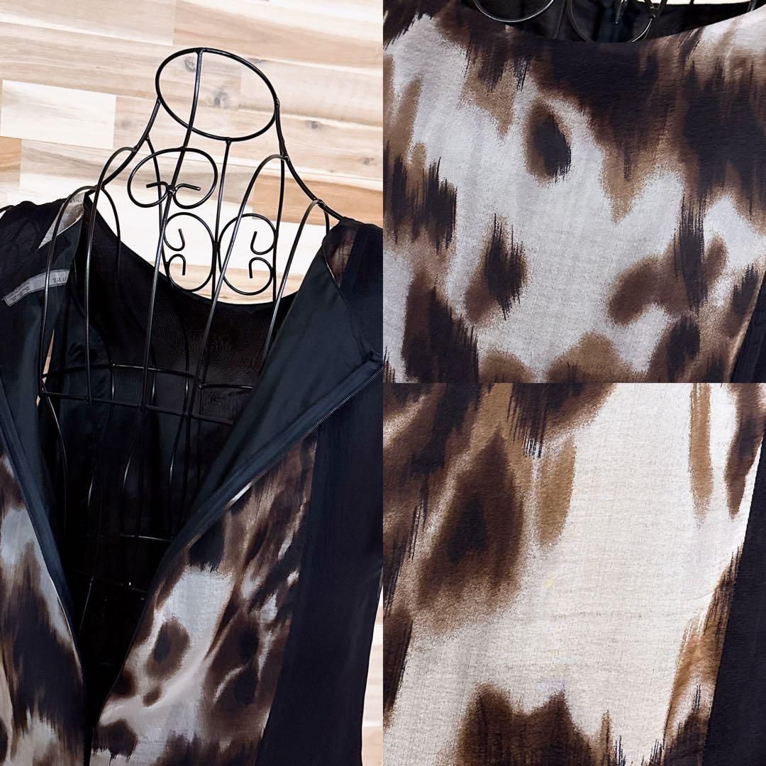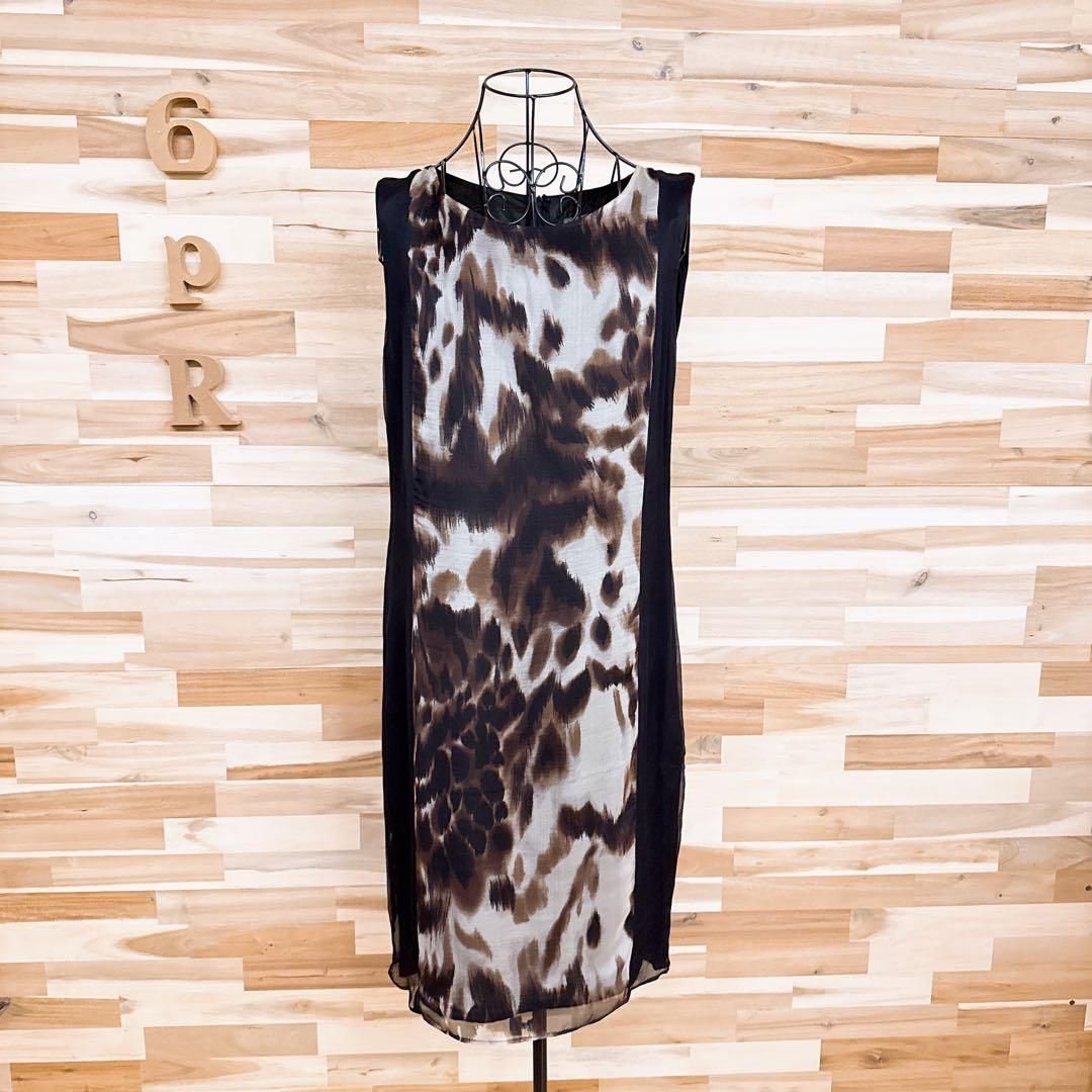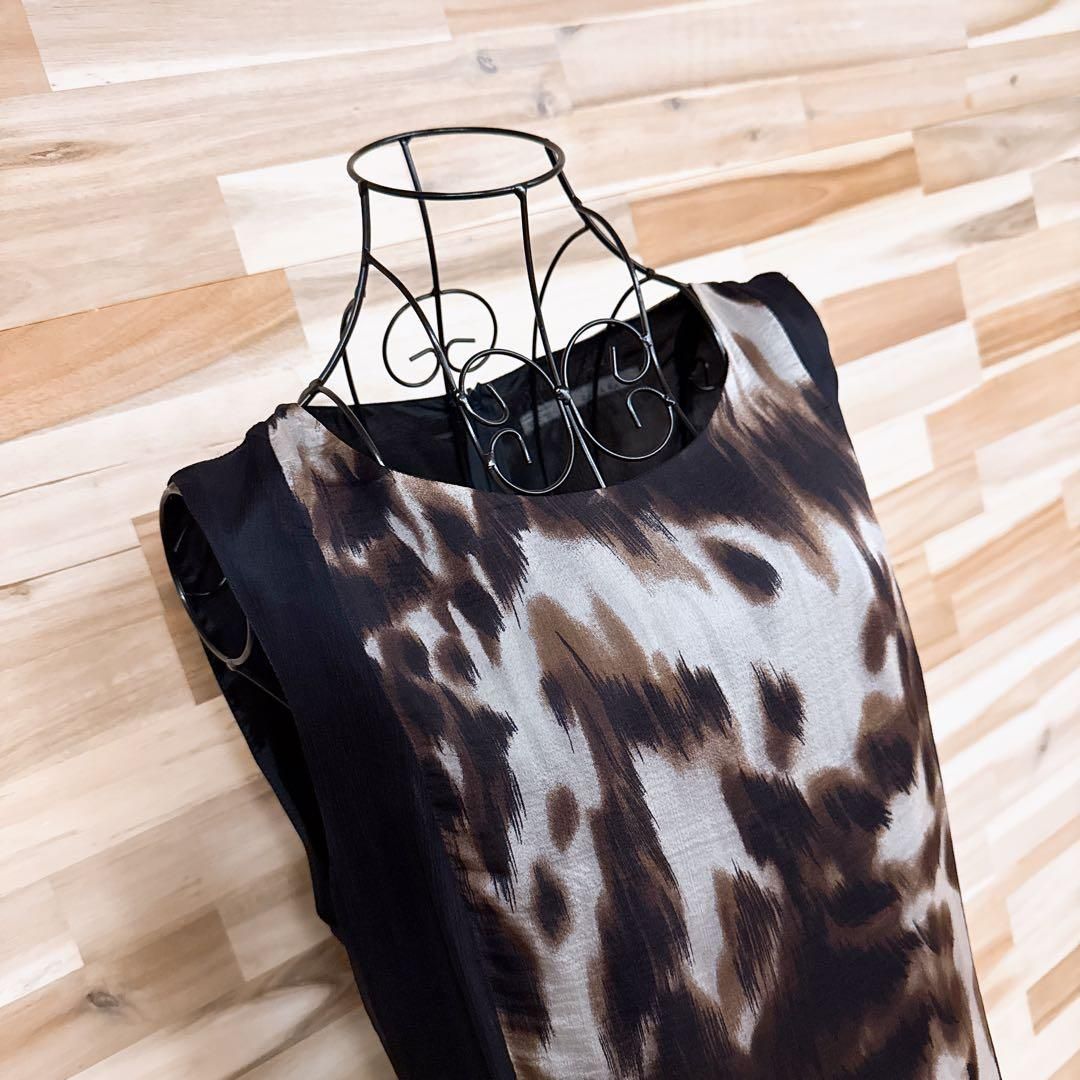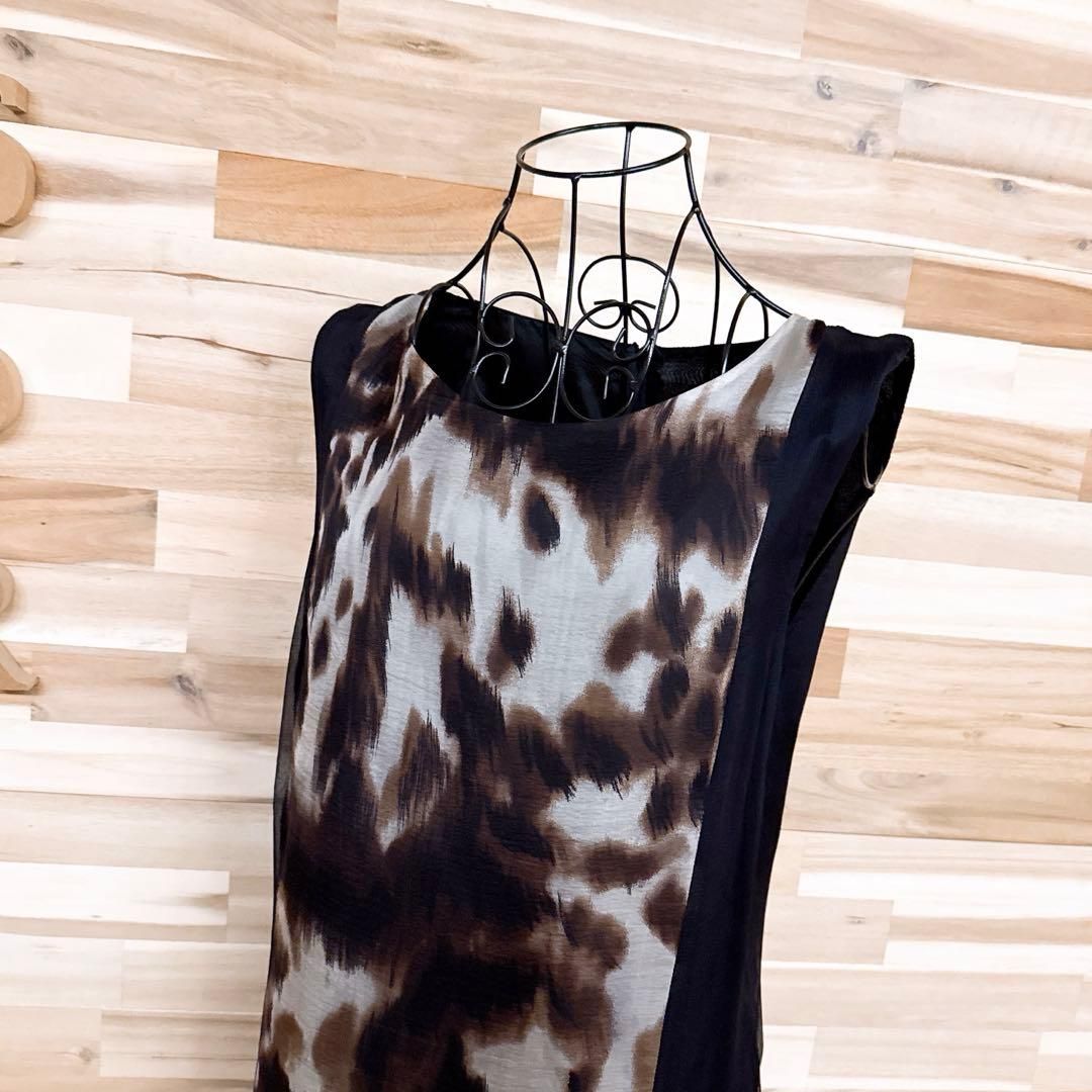 軽やかな透け感としっとりとした落ち感が魅力の生地に、ブラウンとブラックを基調にしたアニマルのようにも見える柄が大胆に映えるデザイン。サイドのブラック切り替えが縦のラインを強調し、すっきりとした印象をプラス。揺れ感のあるシルエットが女性らしい動きを演出し、洗練されたコーディネートに。夜のお出かけにも映えるZARAのワンピースです。※LGスタイラーにて除菌リフレッシュ・スチームクリーニング済みです。