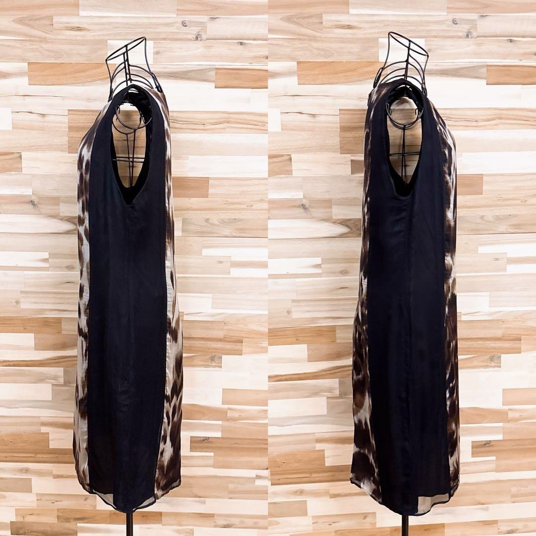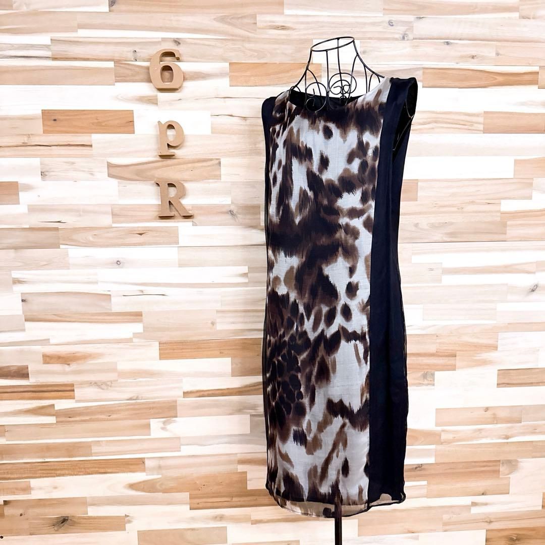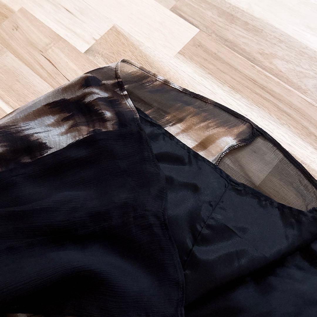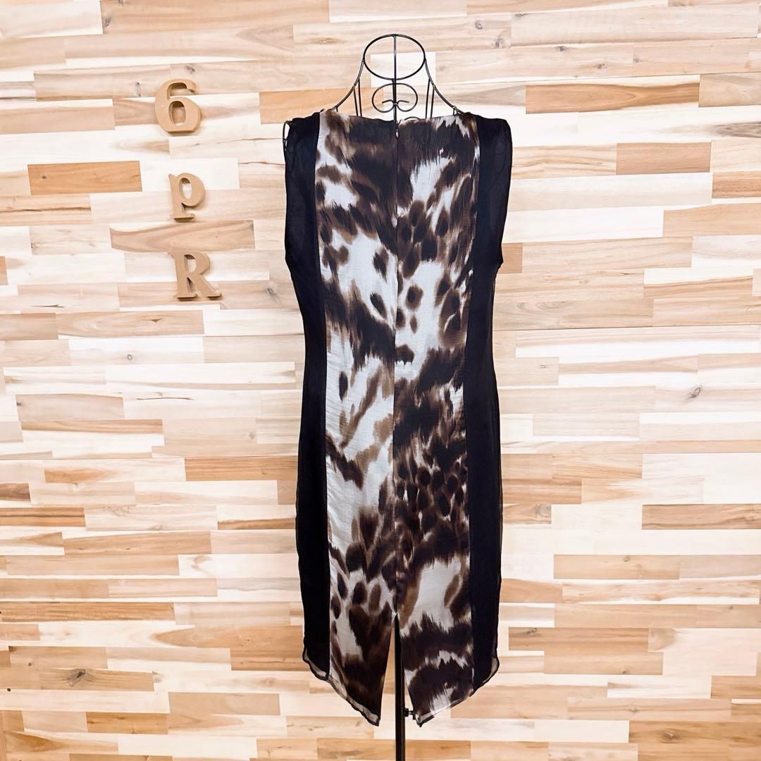 軽やかな透け感としっとりとした落ち感が魅力の生地に、ブラウンとブラックを基調にしたアニマルのようにも見える柄が大胆に映えるデザイン。サイドのブラック切り替えが縦のラインを強調し、すっきりとした印象をプラス。揺れ感のあるシルエットが女性らしい動きを演出し、洗練されたコーディネートに。夜のお出かけにも映えるZARAのワンピースです。※LGスタイラーにて除菌リフレッシュ・スチームクリーニング済みです。