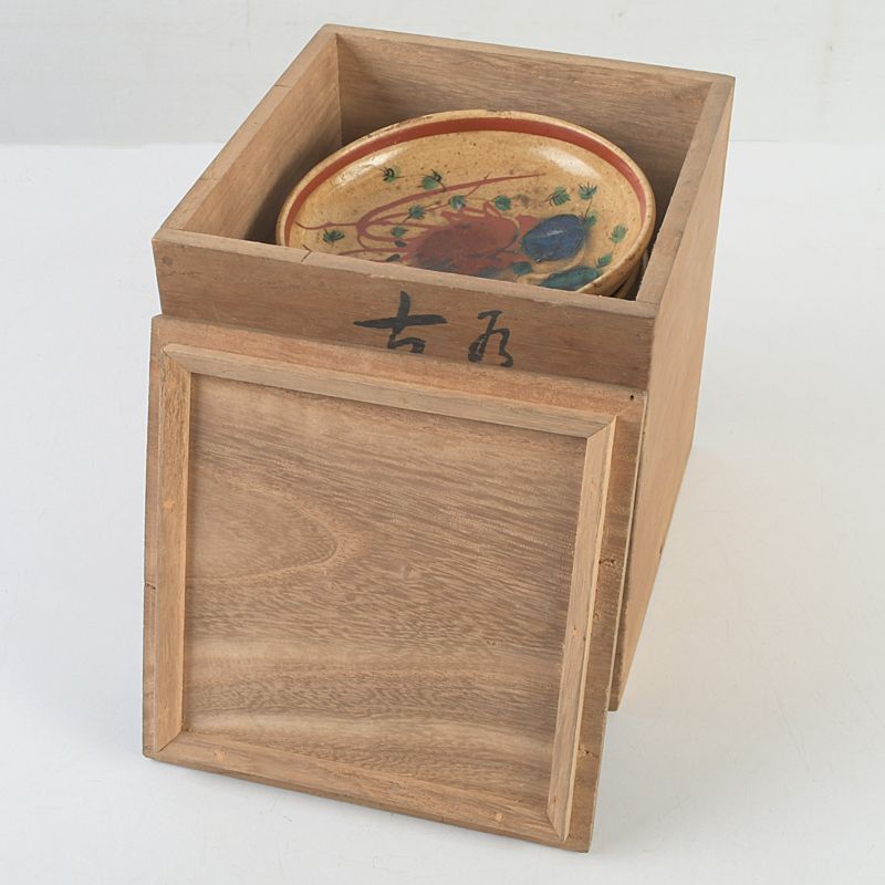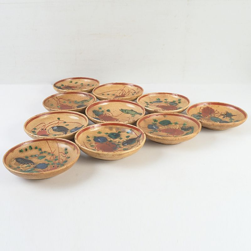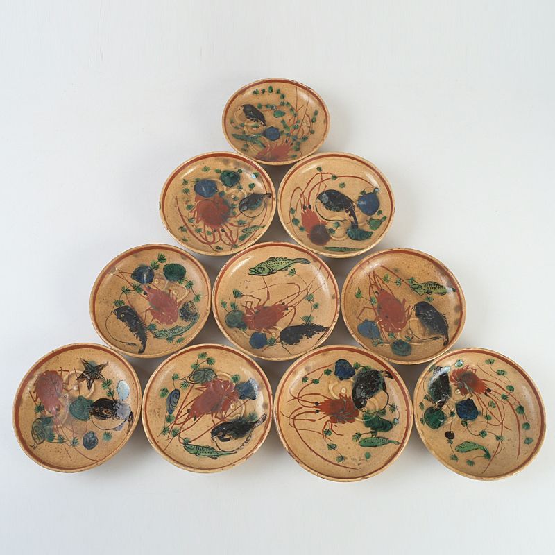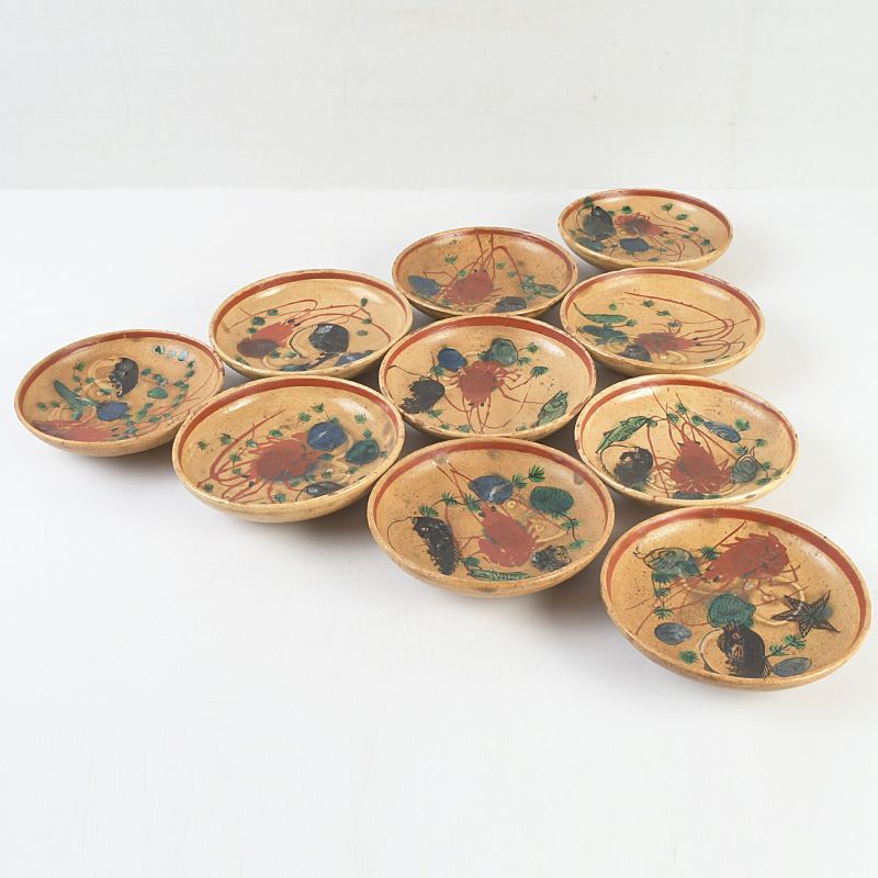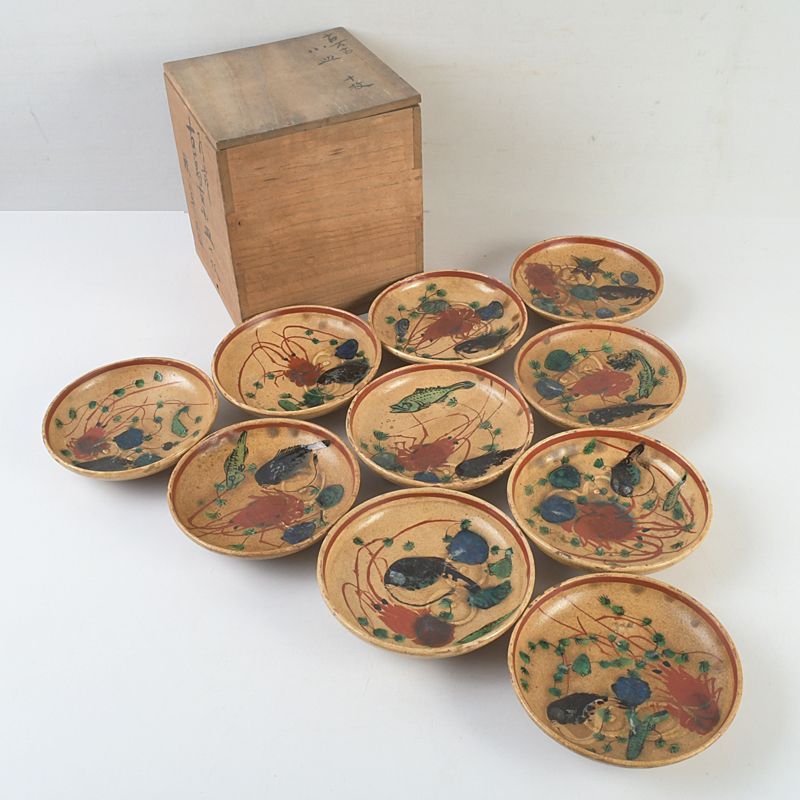 萬古焼 古萬古 海老魚文 小皿 十客 時代箱付 V S311