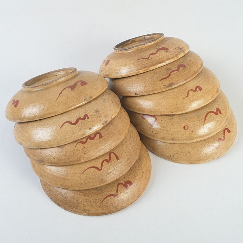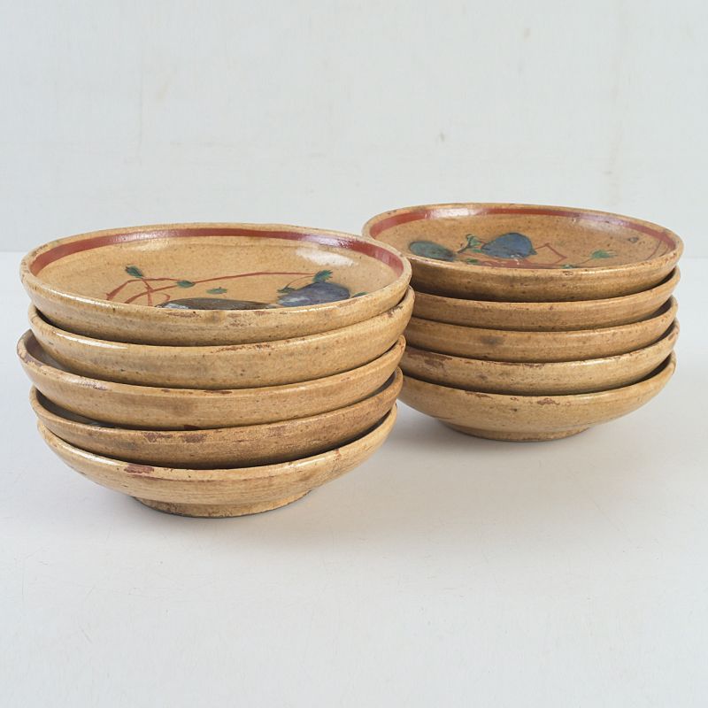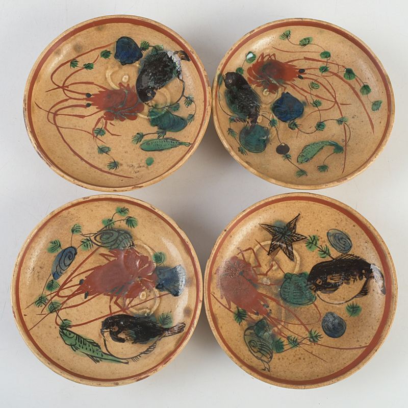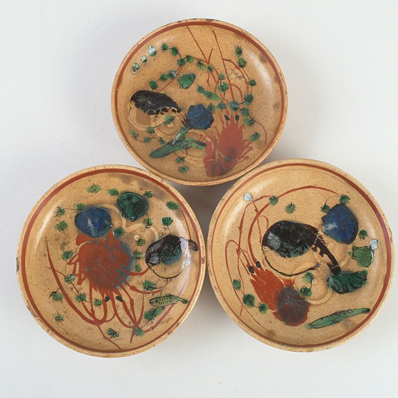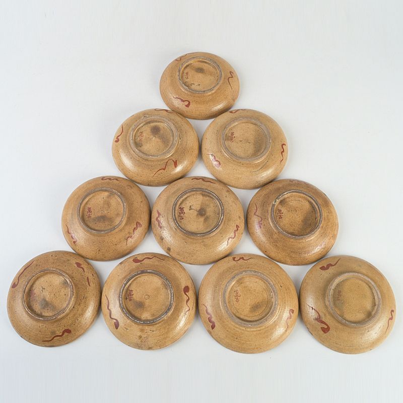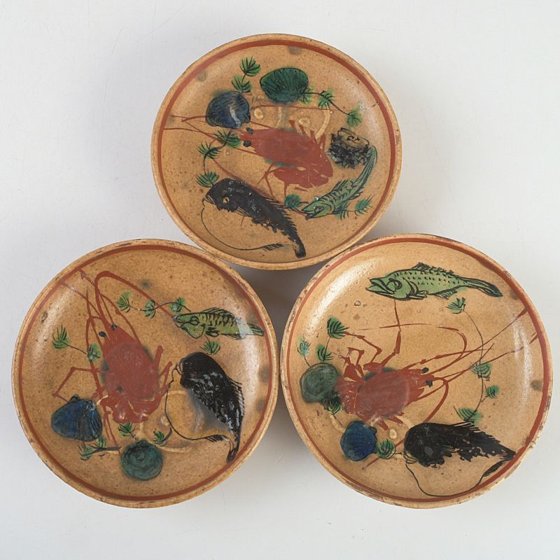 萬古焼 古萬古 海老魚文 小皿 十客 時代箱付 V S311