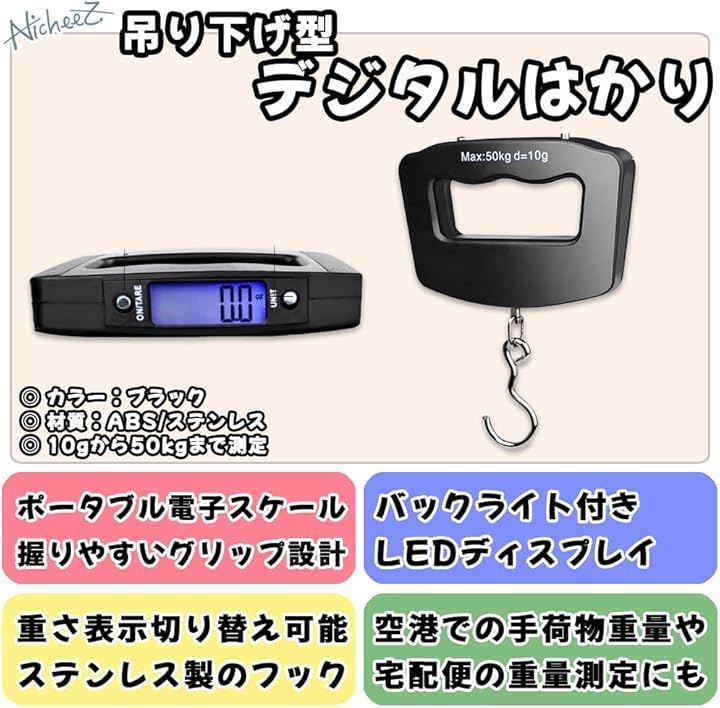 「ポータブル電子スケール」コンパクトサイズの吊り下げ型デジタルはかり。