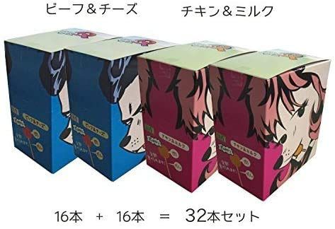 ブランド:ペロキュー 正規品 日本製全部食べられるペロペロキャンディ型のおやつ。ビーフ&チーズ16本、チキン&ミルク16本の2種類セット【お得な32本