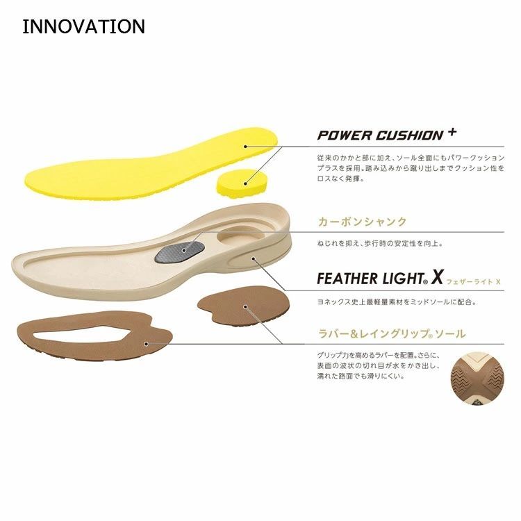 [ミッドソール]パワークッションプラス、フェザーライトエックス、高強度カーボン、硬質 EVA