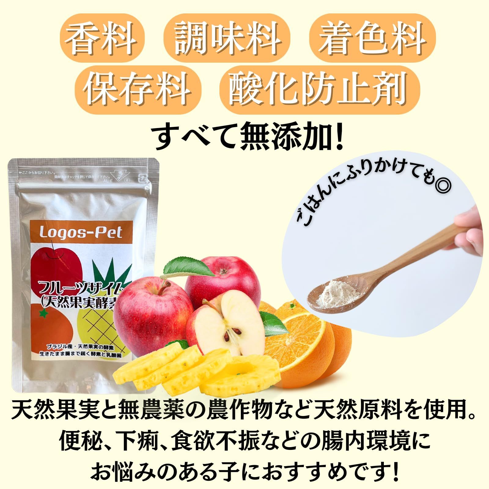 🐶【一番人気ペット用酵素サプリ】ロゴスペットオリジナルサプリの中で一番人気のペット用サプリメント。犬・猫・うさぎ・小動物など幅広いペットにおすすめな商品です。🐶【商品のこだわり】天然果実酵素と乳酸菌が生きたまま腸まで届いてくれるので、腸内環境の改善につながります!🐶【安心の国内加工】天然果実と無農薬の農作物など天然原料から作られています。添加物、調味料、着色料、保存料、防腐剤不使用で安心の国内加工食材です。🐶【バランスの取れた豊富な栄養分】ミネラル、ビタミン、乳酸菌類などの栄養分がバランスよく含まれています。体内への吸収もよく、とりすぎによる副作用などの心配もいりません。🐶【利用法】毎日のごはんにまぶして与えるだけなのでとっても簡単!(目安量:毎食事量の1~2%程度の量)