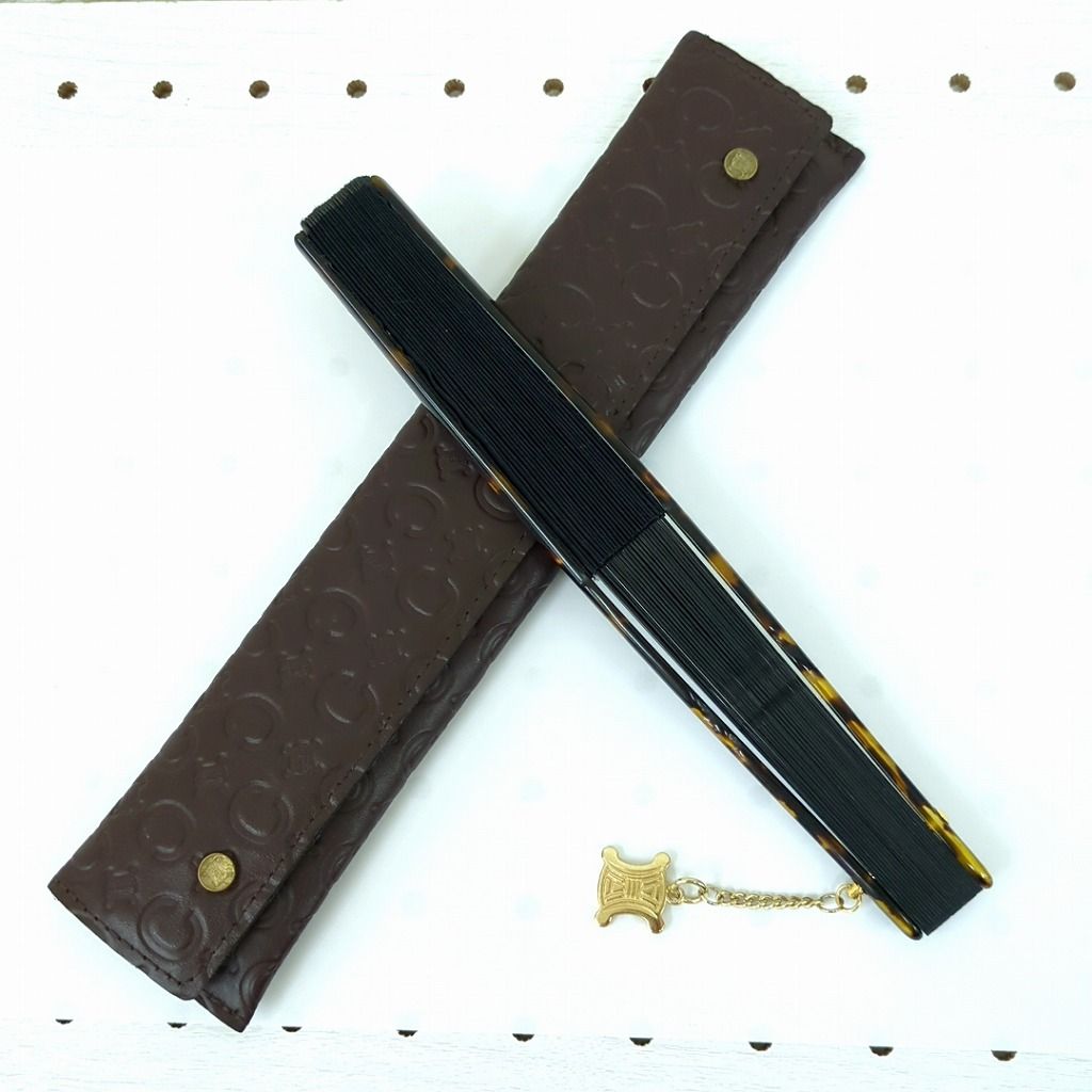 レザーケース外側すれよごれございます。ケースホック部分黒ずみ汚れあり。扇子若干スレ汚れ扇子端部分シワございます。