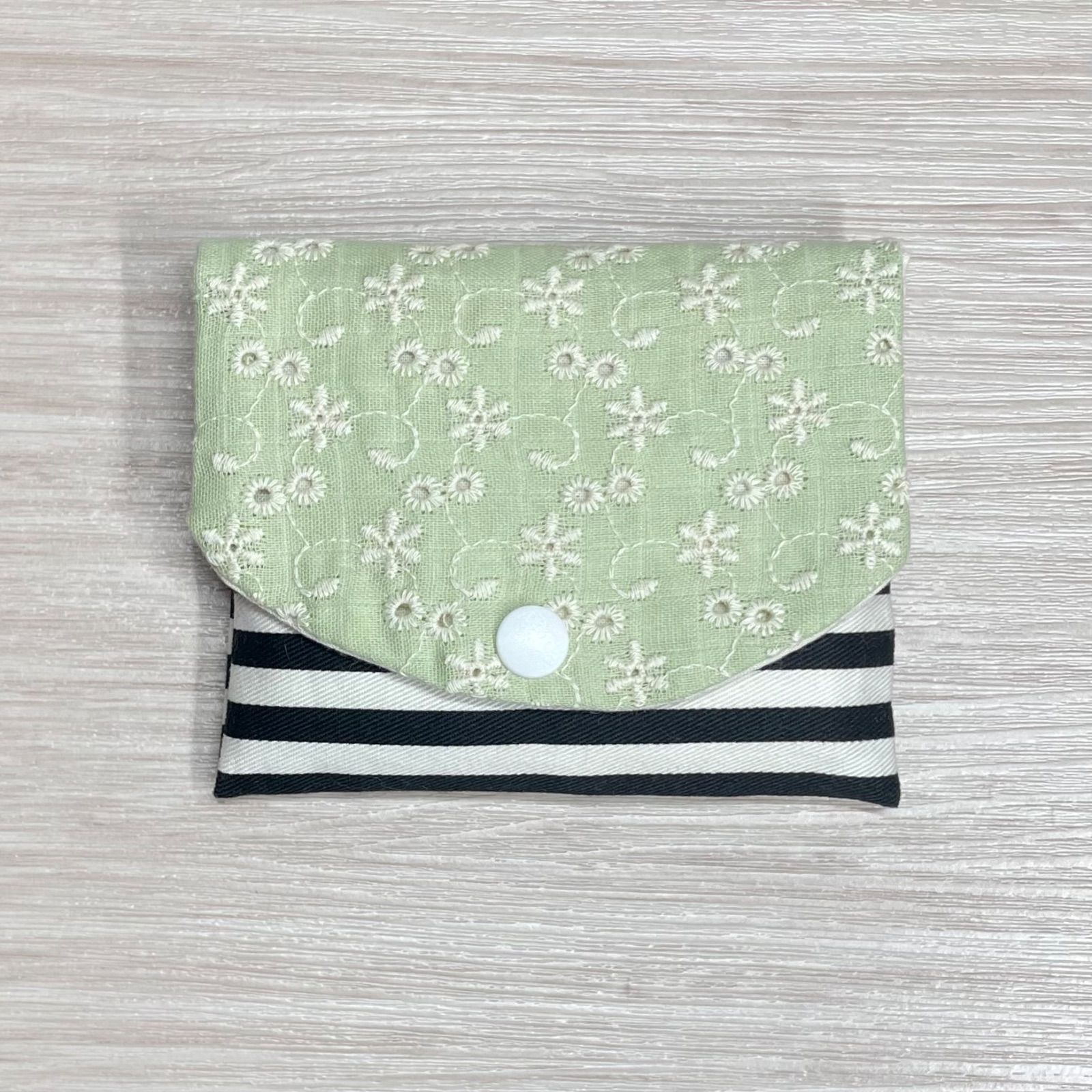 優しい手触りのレースを使ったポケットティッシュケース付きのフラップポーチです。絆創膏、小さいナプキン等、小物を入れられます。