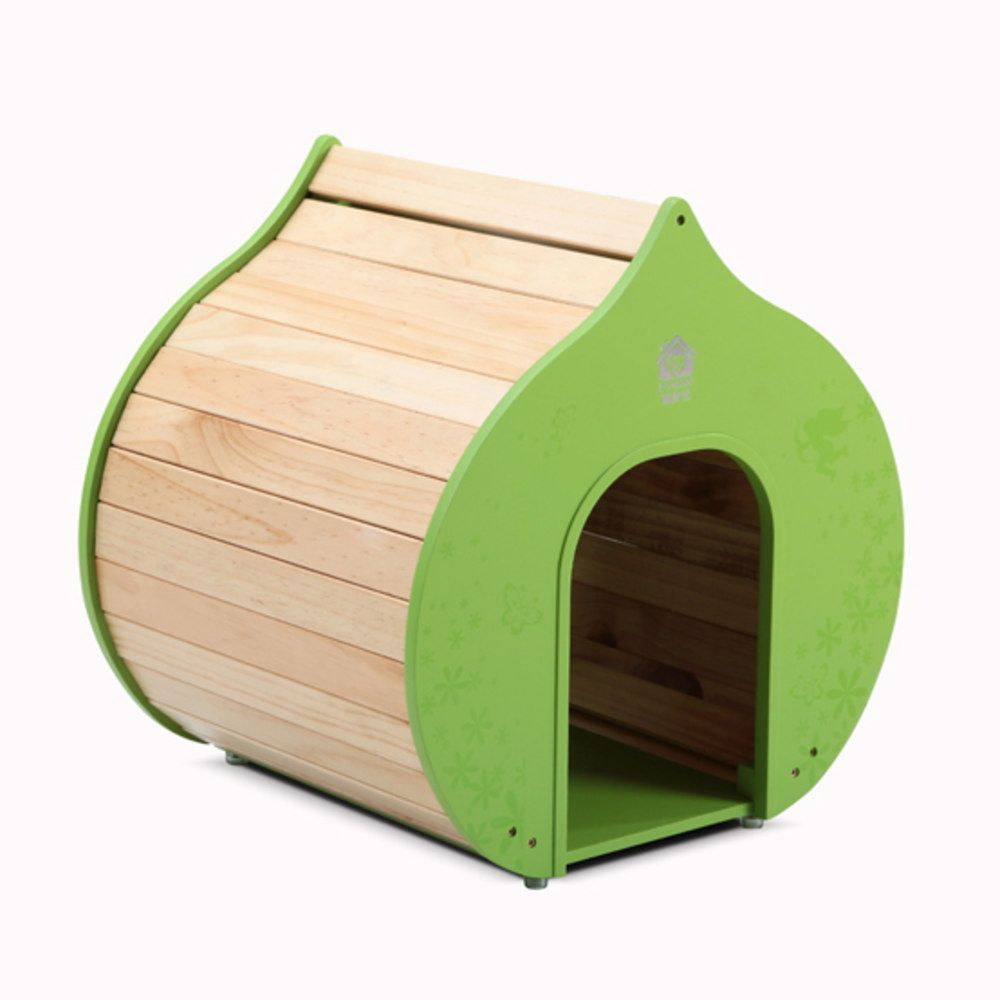 この木製のペットハウスは、室内用に設計されたおしゃれなペット小屋です。