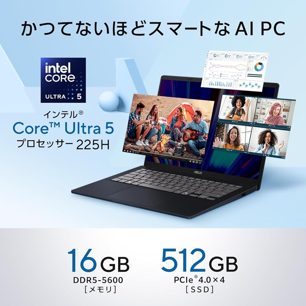 【CPU】インテル Core Ultra 5 プロセッサー 225H【NPU】インテル AI Boost (NPU AI エンジン)【メモリ】16GB DDR5-5600【スロット】SODIMMスロット×1 (空き×1)