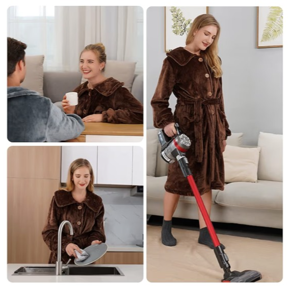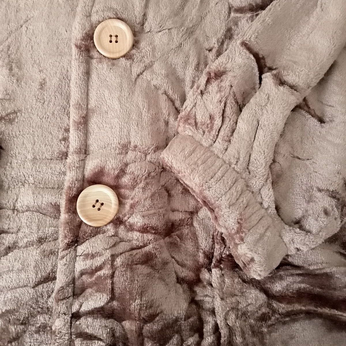 【襟元ボタン&ガウンベルト付き】前に全開着る毛布、木製のボタンを使用して、環境に優しいです。襟にボタンが付いていて、襟を立てボタンをはめると首にも暖かいです。同生地のベルトも付き、動きやすいを確保して、着たまま過ごせる着る毛布です。