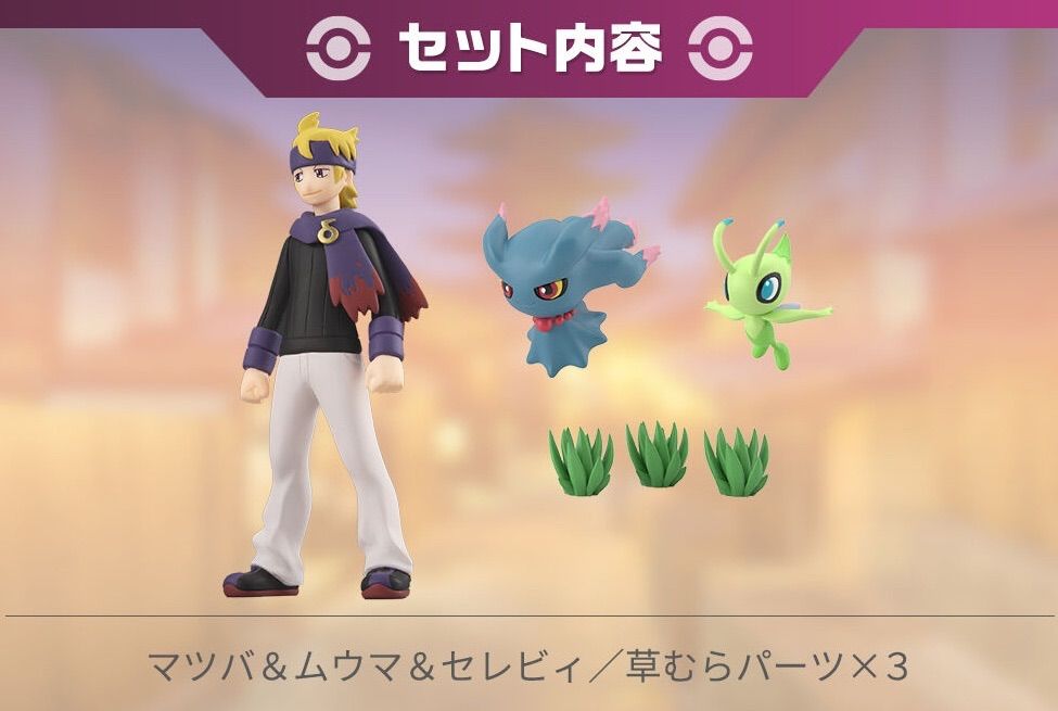 ジョウト地方のエンジュシティジム ジムリーダーのマツバとムウマ、さらに幻のポケモン・セレビィ、草むらパーツ3個をセットにした商品が登場。
