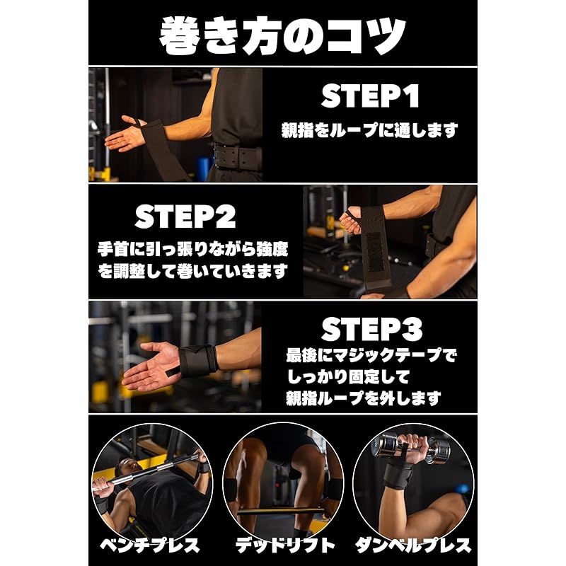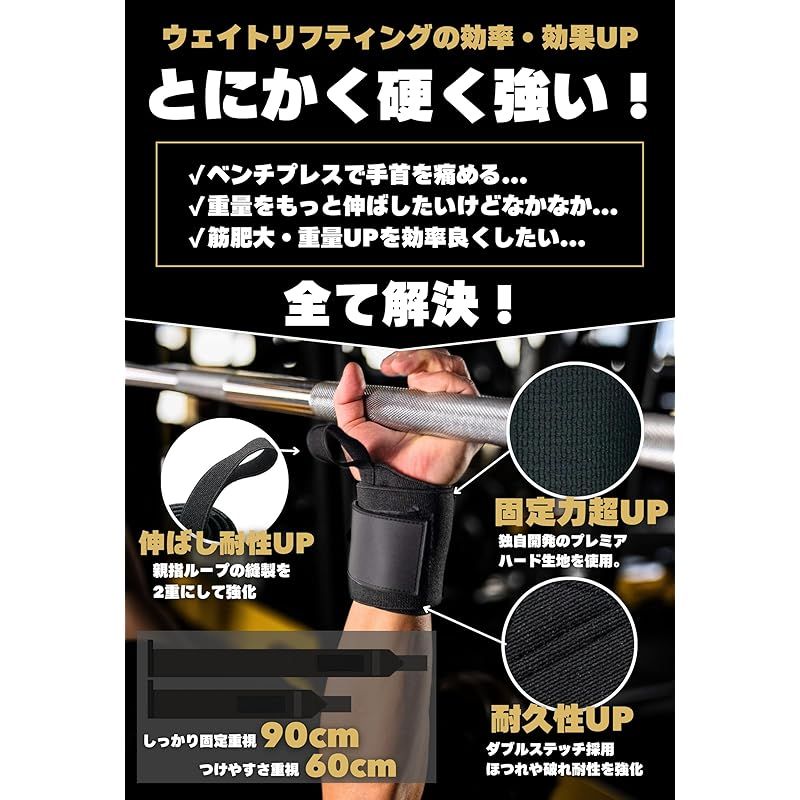 商品名:FITPEAK リストラップ 筋トレ【独自開発の極硬生地で手首サポート】手首 サポーター ベンチプレス ウェイト トレーニング 高重量対応 ブラック 60cm