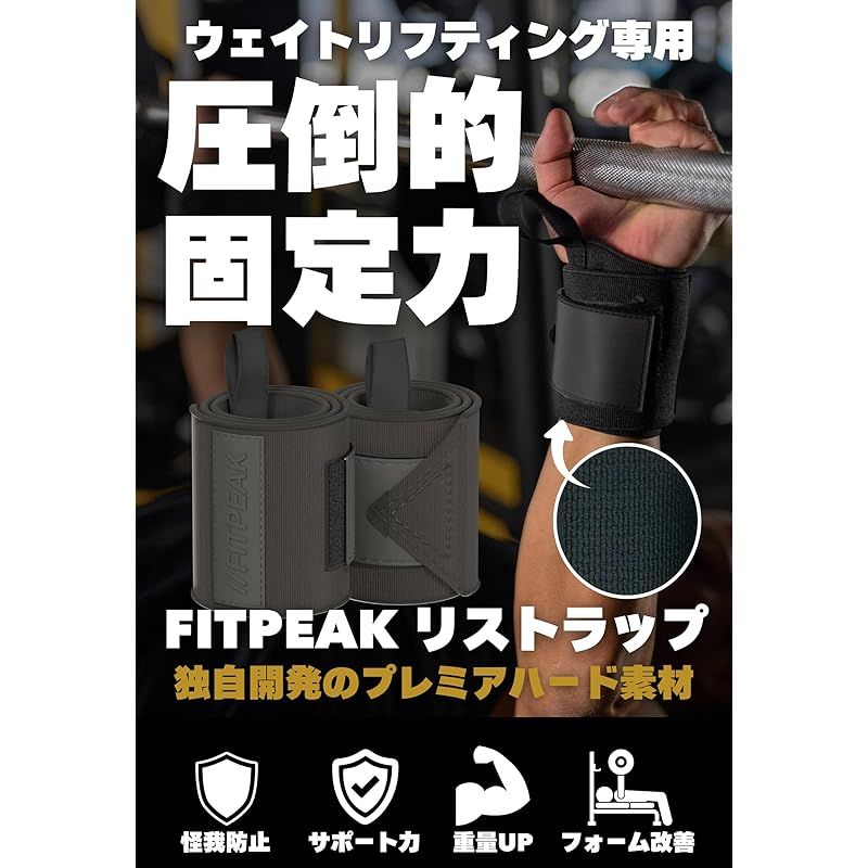 FITPEAKリストラップ トレーニング用 筋トレ ウェイトリフティング 用の手首サポーターです。手首を固定して、ベンチプレスやアームカールなど手首を固定して、怪我防止、フォーム改善、重量UPが期待できます。筋肥大効率や重量UPを目指す方にお使いいただきたいです。
