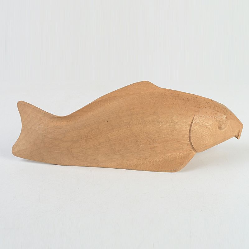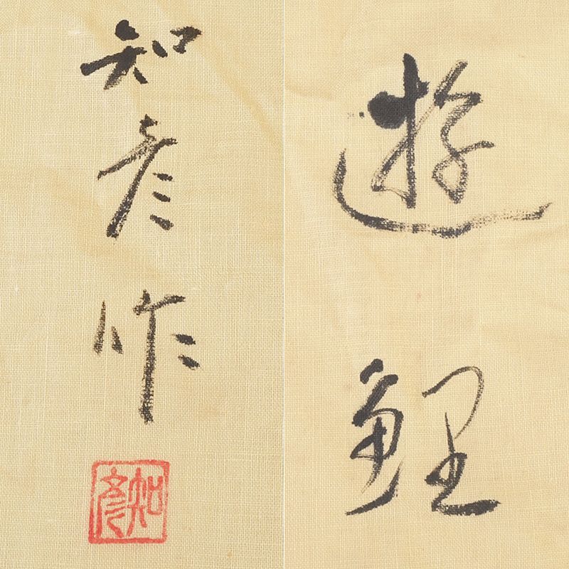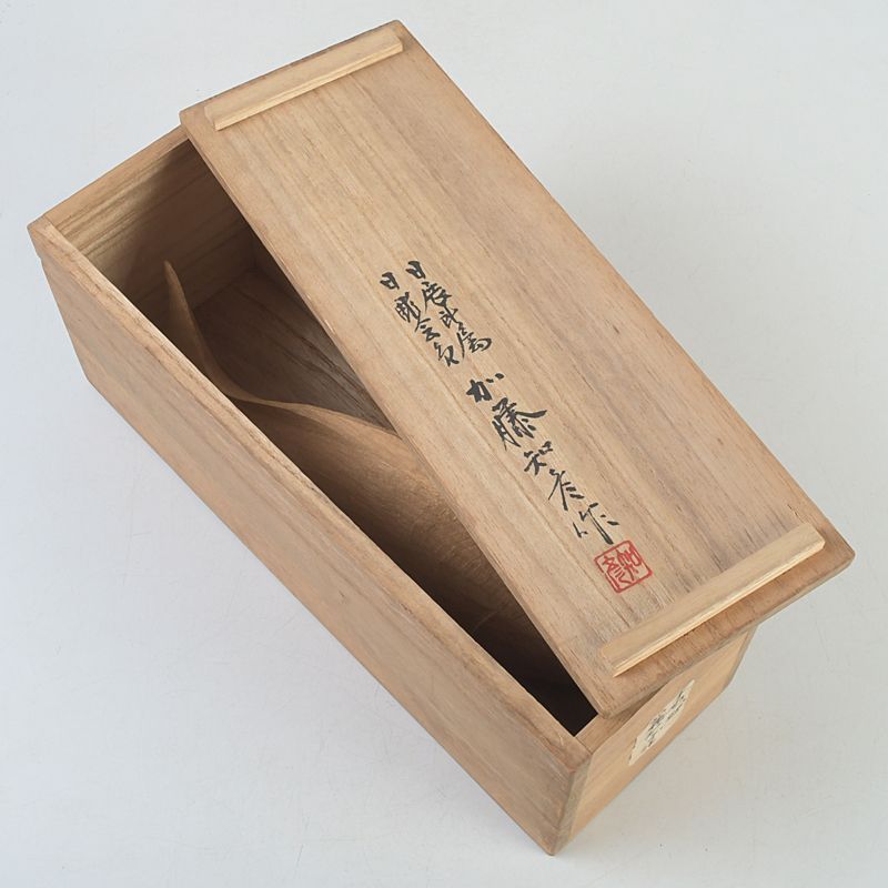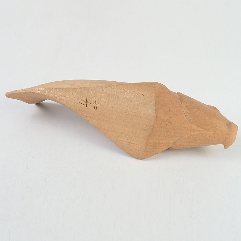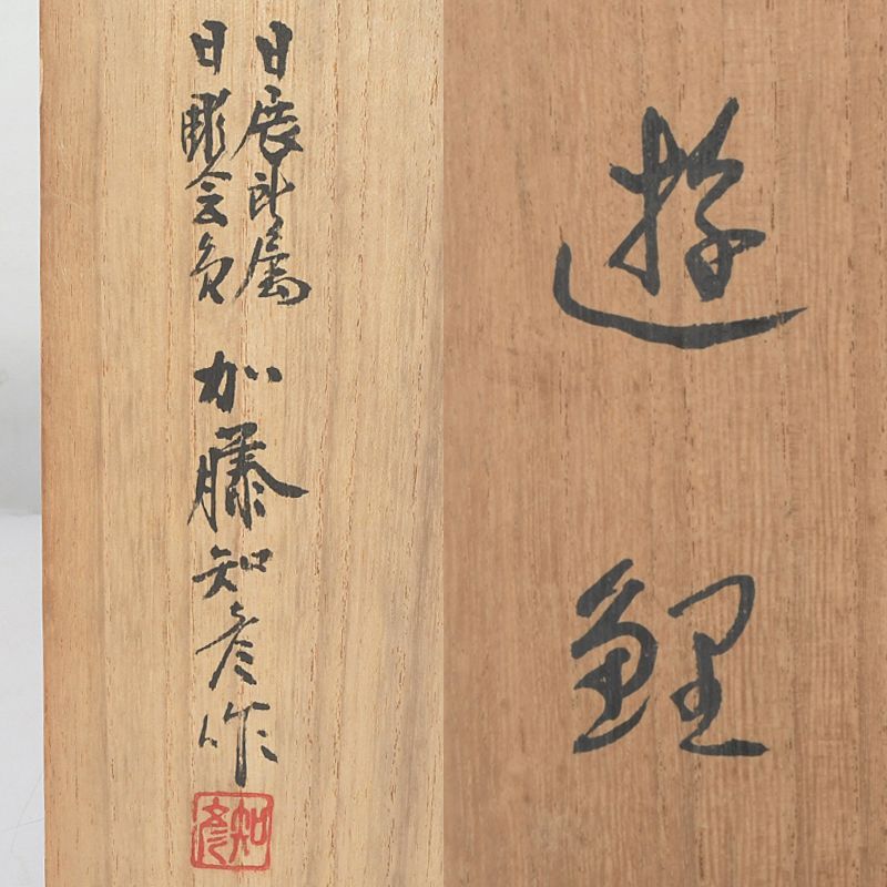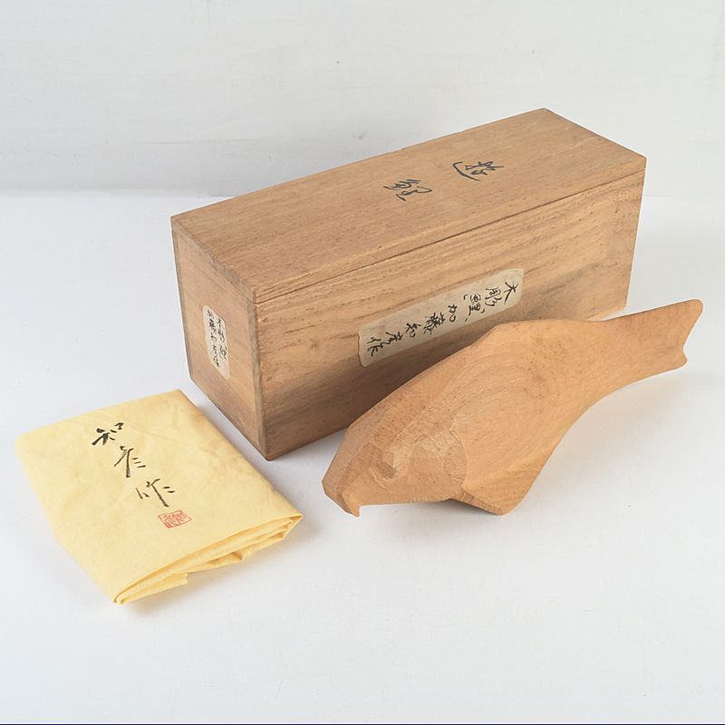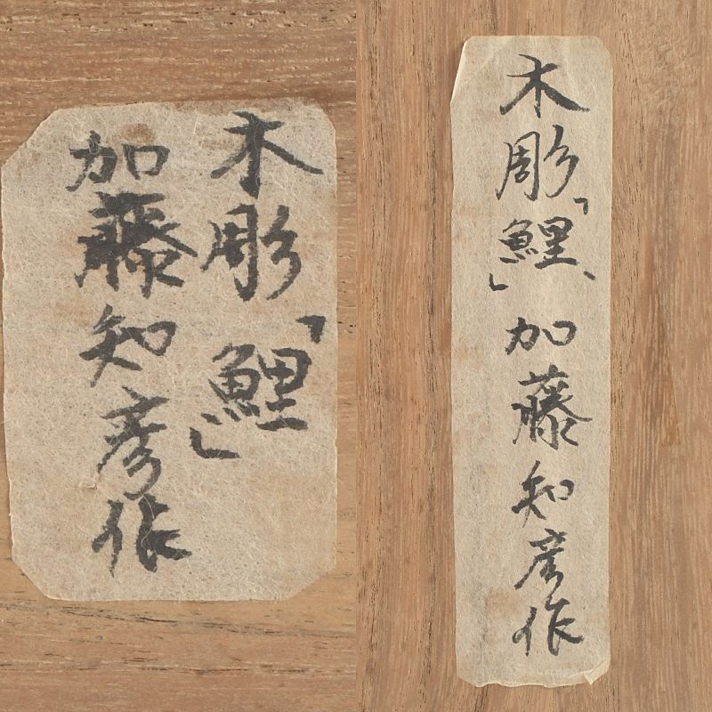 彫刻家 加藤知彦作 木彫 「遊鯉」 置物 共布共箱 N S331