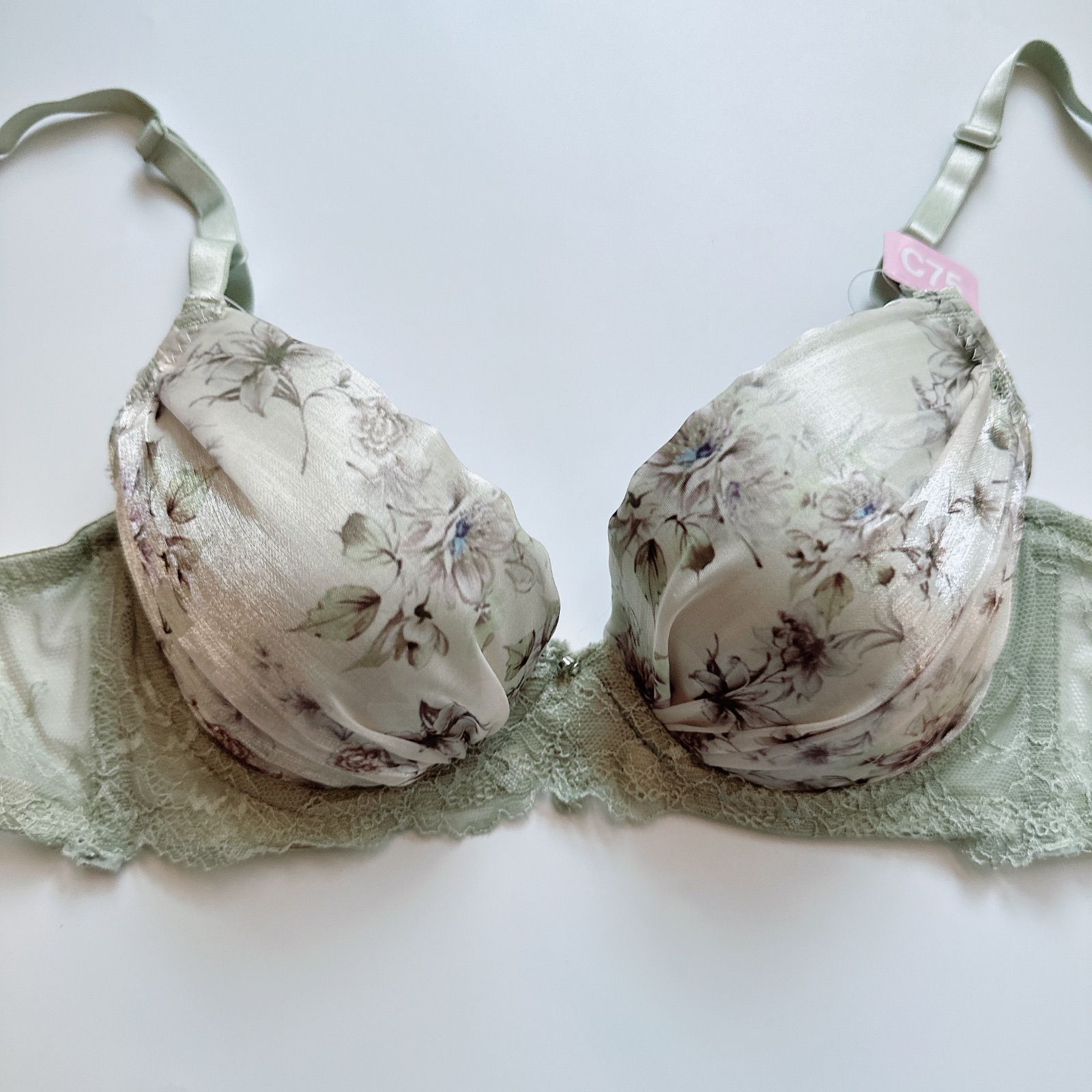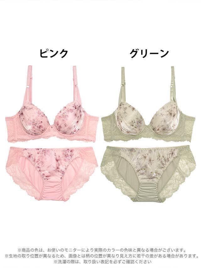 オーガンジーシャインフラワー育乳脇高ブラジャー&フルバックショーツ