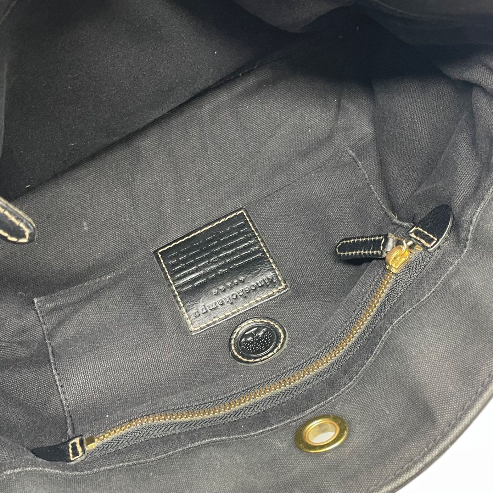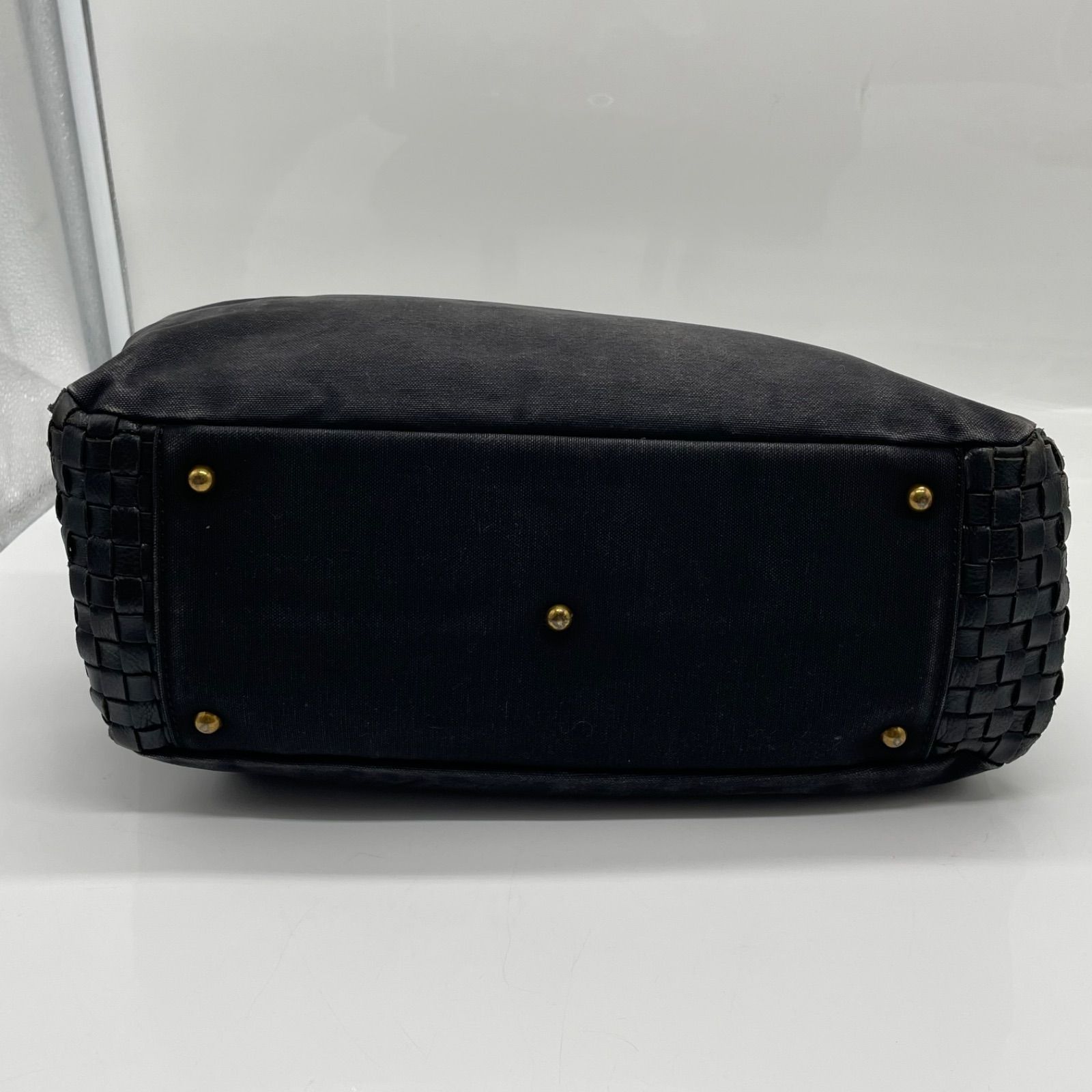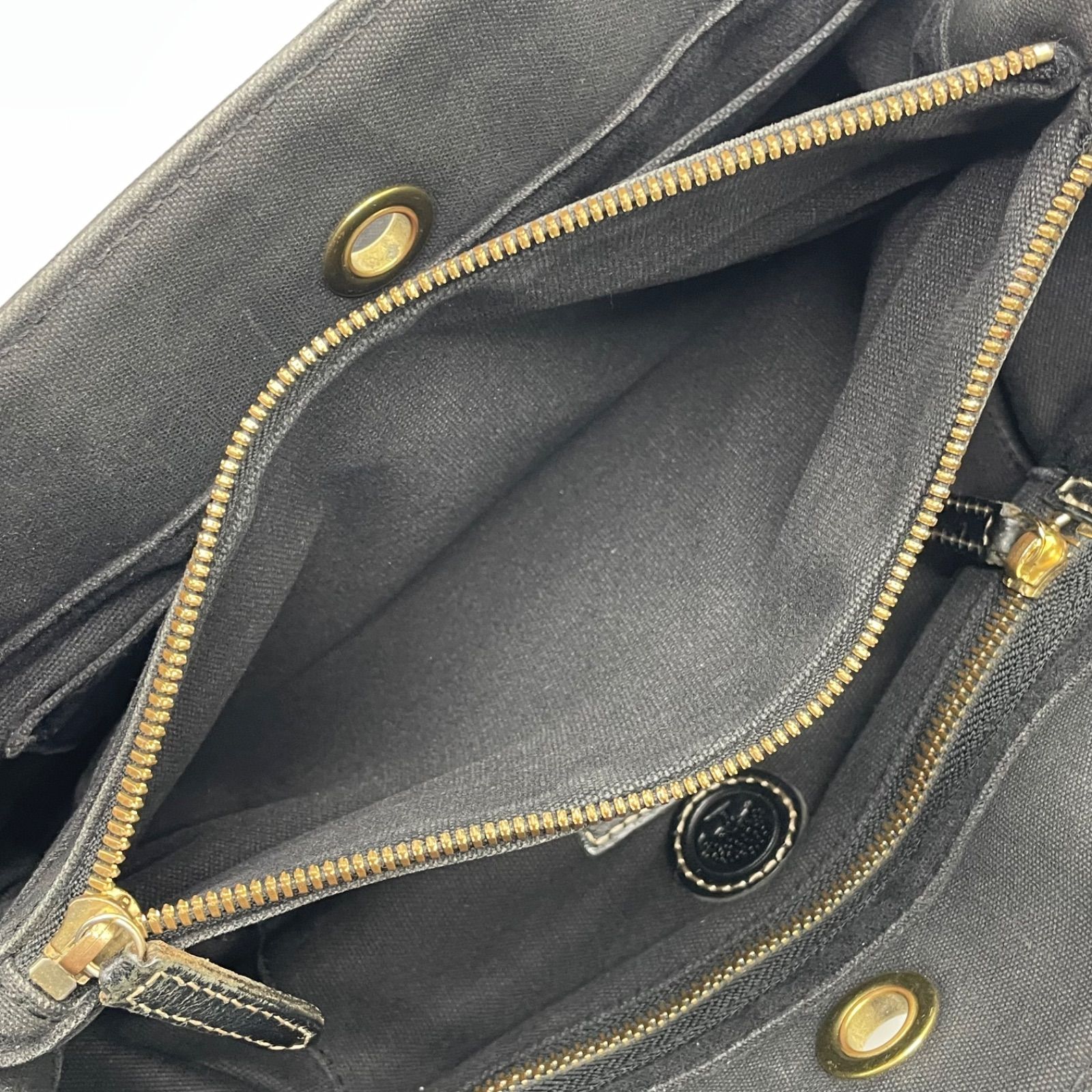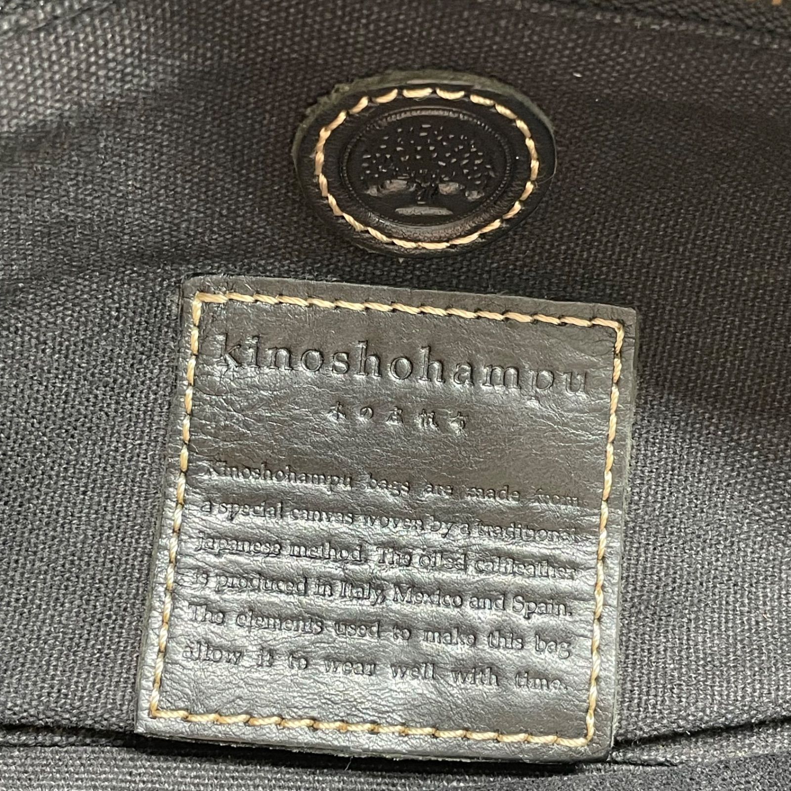BN6823□木の庄帆布 キャンバス×レザー トートバッグ ブラック 横長
