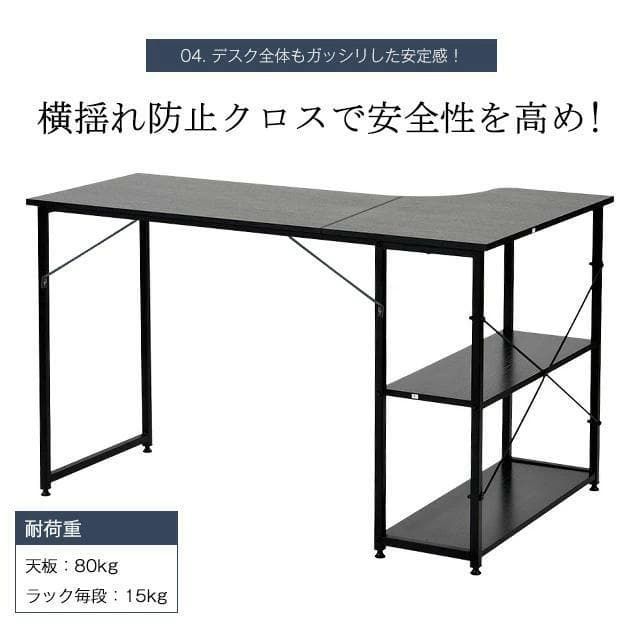 【商品名】:パソコンデスク l字 デスク L字 120cm 2段シェルフ付 l字型 木製 収納付 座デスク ミシン台 シェルフ付きデスク ラック付き デスク付きシェルフ 書斎机 書斎デスク 学習机 勉強机 送料無料