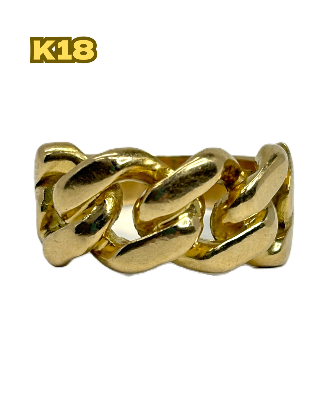 【K18】 リング 指輪 鎖 最大幅1cm 15.5号 9.2g