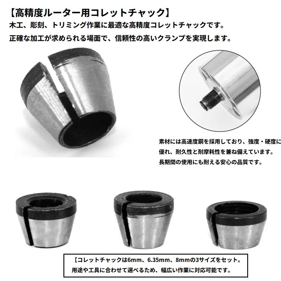 コレットチャックは6mm、6.35mm、8mmの3サイズをセット。