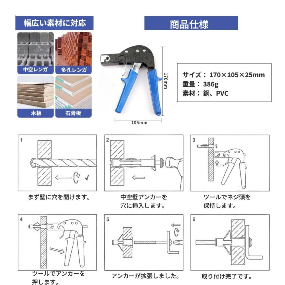 工具でアンカーを押して、壁の裏側でアンカーを広げます。