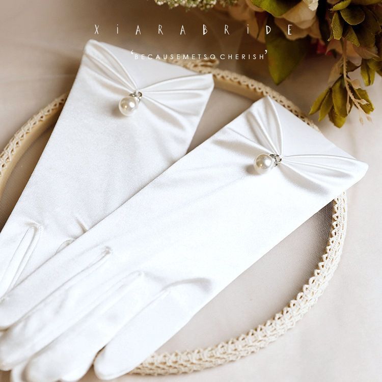 サテン パール ウェディンググローブ 結婚式 ホワイト ブライダル チャペル 記念