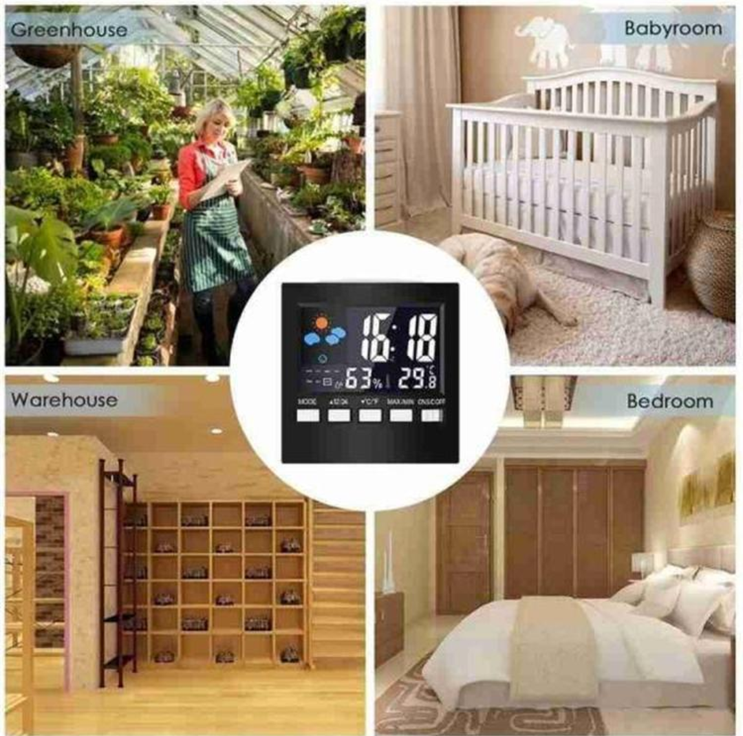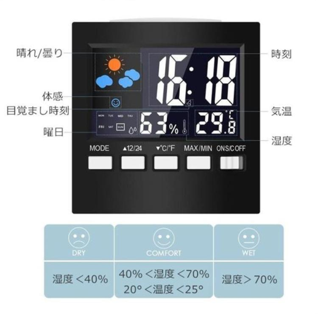 デジタル温湿度計 置き時計 目覚まし時計 多機能 大画面 黒色 ブラック