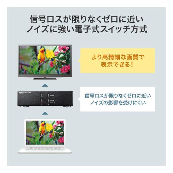 ●切替器内の信号ロスが限りなくゼロに近い電子式スイッチ方式です。