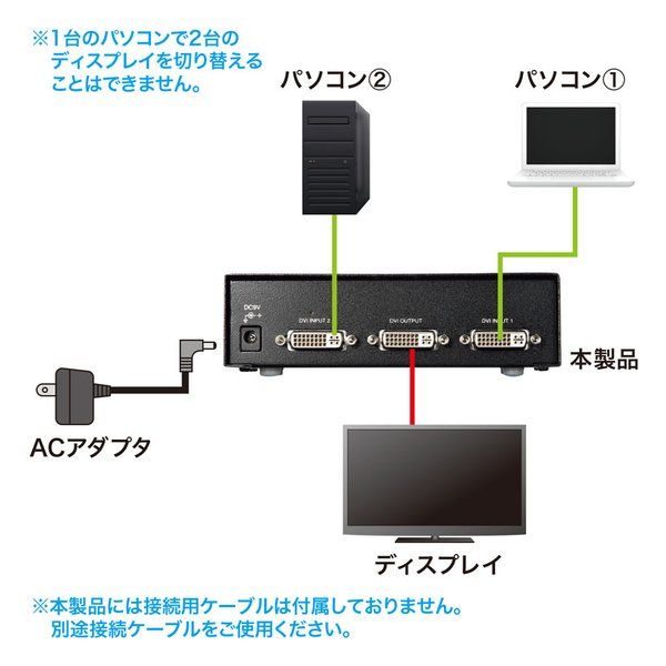 ●パソコン2台のDVI信号(DVI-D)を切り替えて1台のディスプレイ、またはプロジェクターなどに表示することができます。