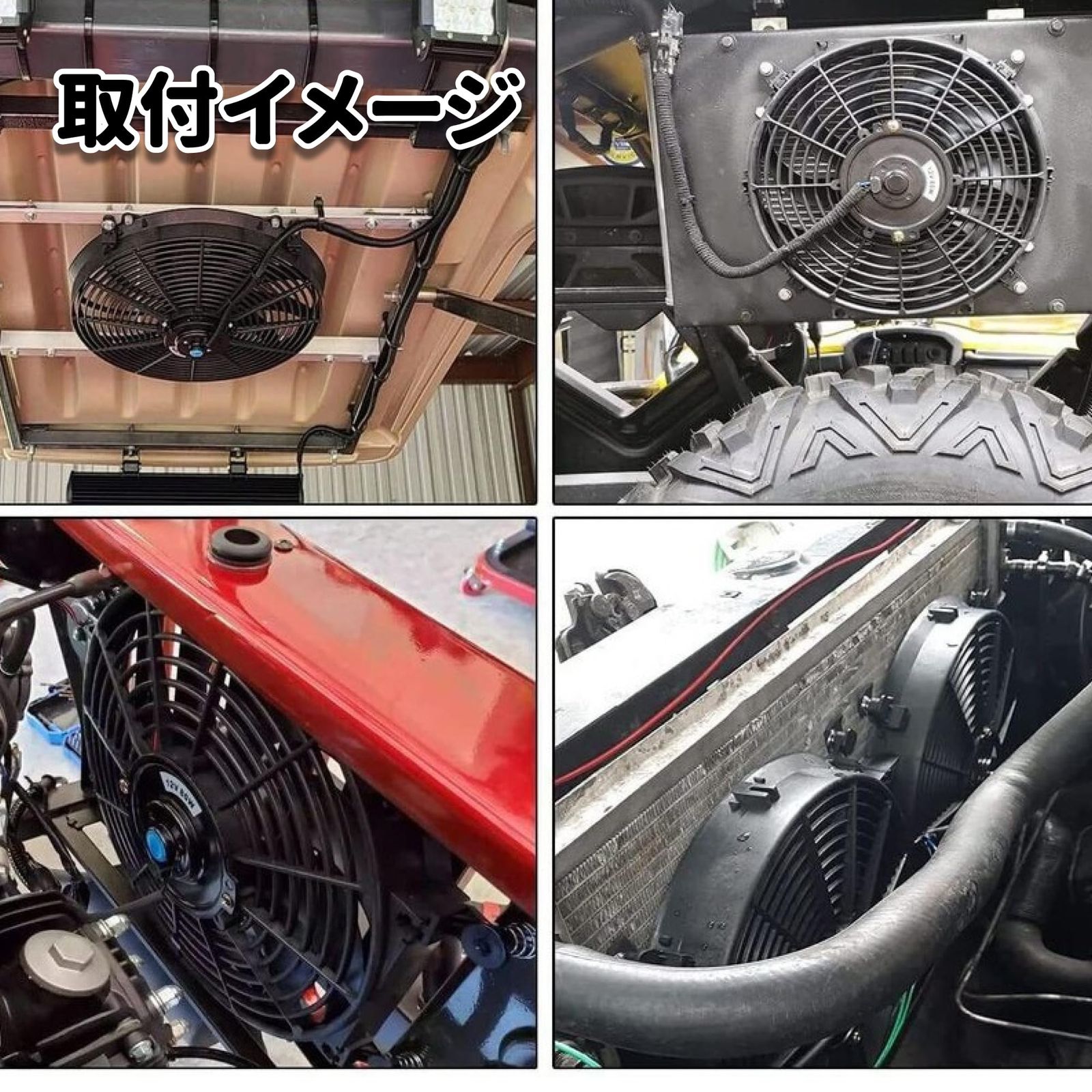 RPMの回転数を持ち、低ノイズでスムーズな運転が可能になります。また商品の材質は耐久性に優れたPP製なため、長期間にわたってご利用頂けます。加えて、取り付けキットも付属しているため、あらたな部品の購入なく取り付けが可能です。サイズが合えば取り付け可能な汎用品のため、スポーツカー、セダン、ステーションワゴン、カスタム車、さらにはバイクの水冷ラジエーターファンや大型オイルクーラーの冷却ファンとしても使用可能です。エアコンコンデンサーファンとしても機能し、エアコンの効きが悪い車にも効果的です。【商品内容】
