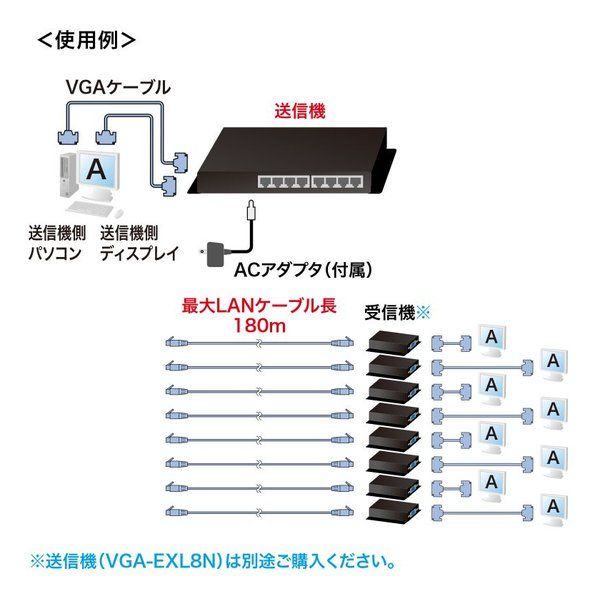 ●サンワサプライ製ディスプレイエクステンダーから出力された映像信号を受信する専用の受信機です。