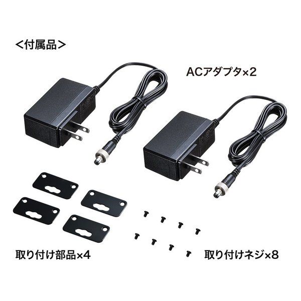 ■セット内容:送信機×1、受信機×1、ACアダプタ(DC5V 2.6A)×2、取り付け部品×4、取り付けネジ×8、取扱説明書×1