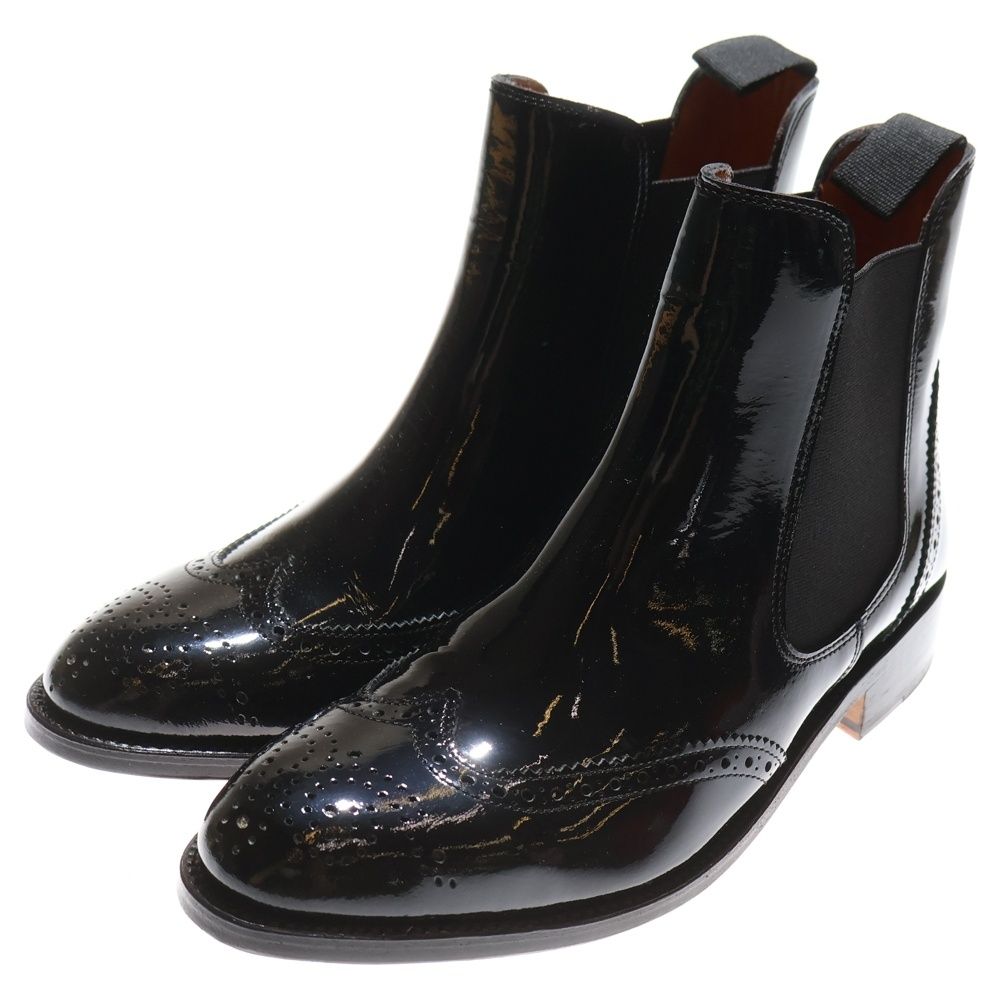 【品名】サイドゴア ウィングチップ パテントレザーブーツ ブラック 805