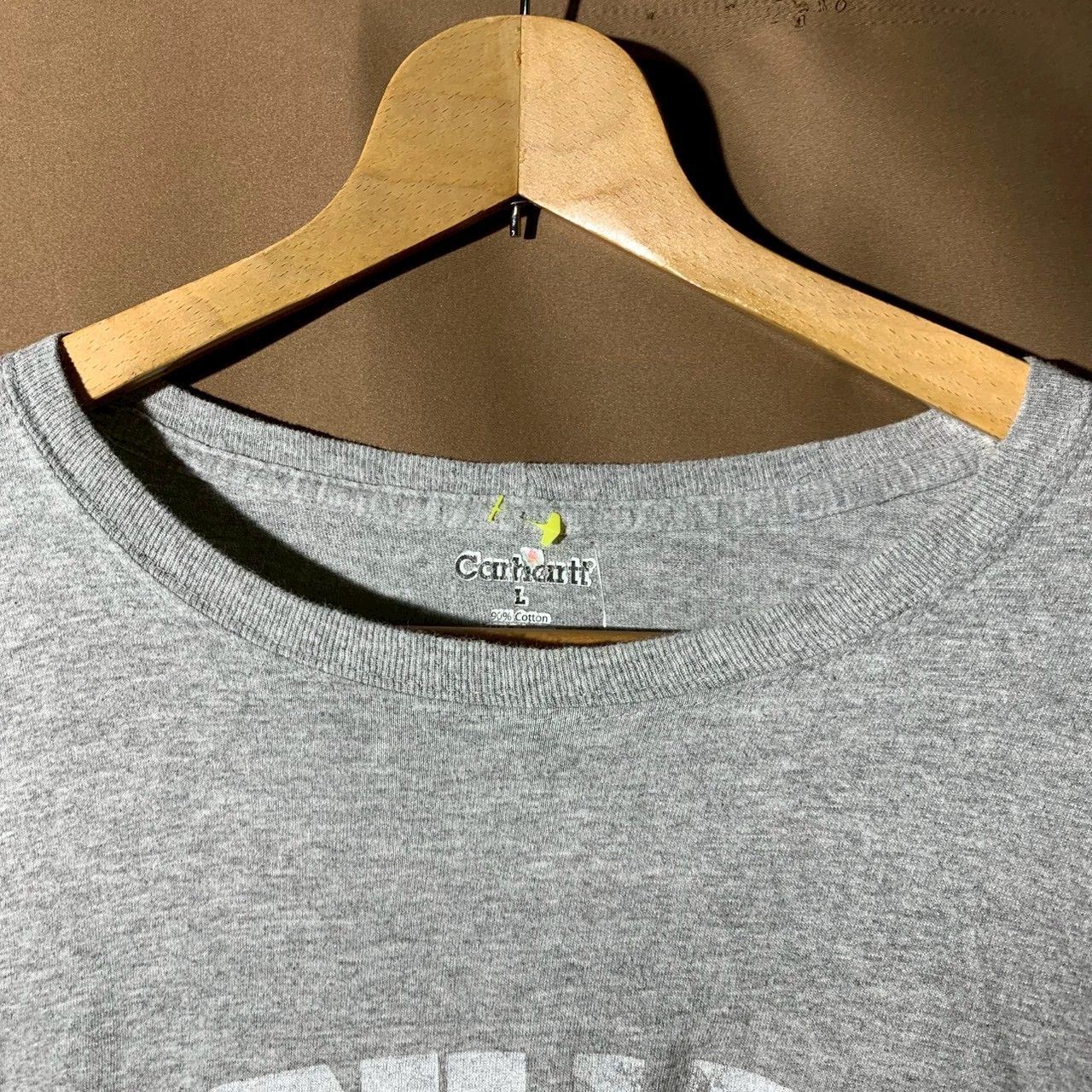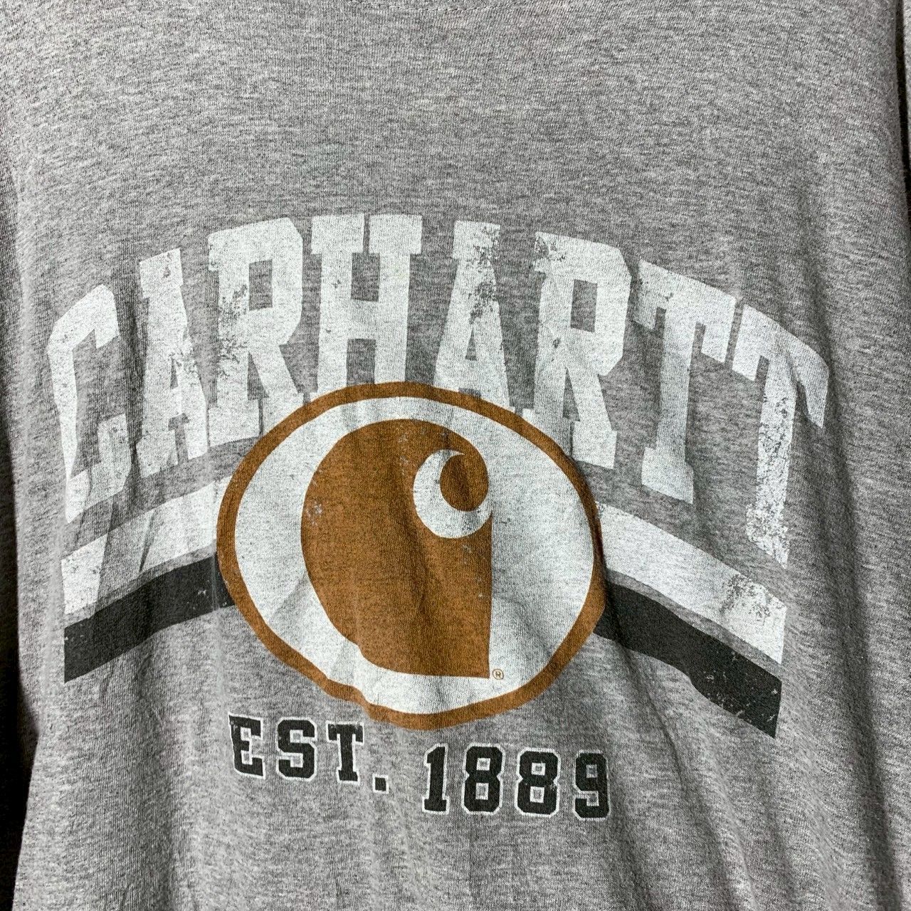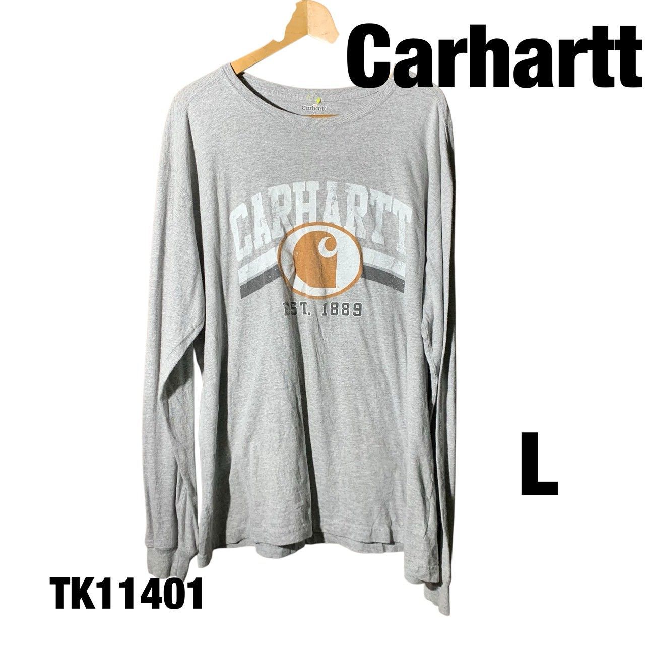 Carhartt ライトグレー ロンT 長袖 Tシャツ L ロゴ プリント クルーネック 古着 TK11401