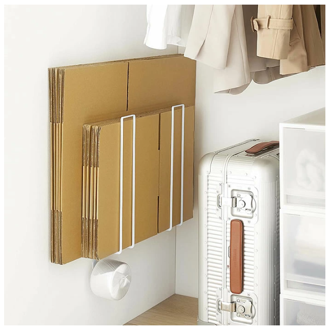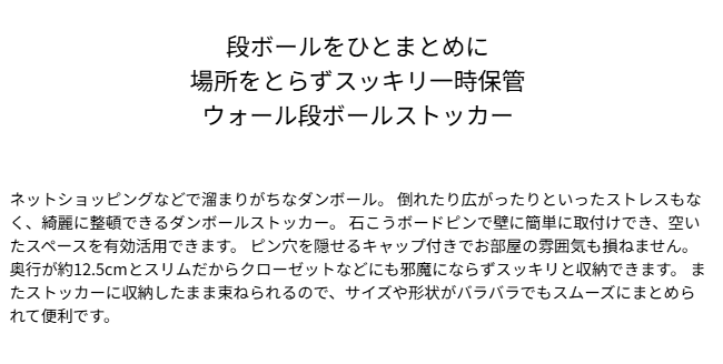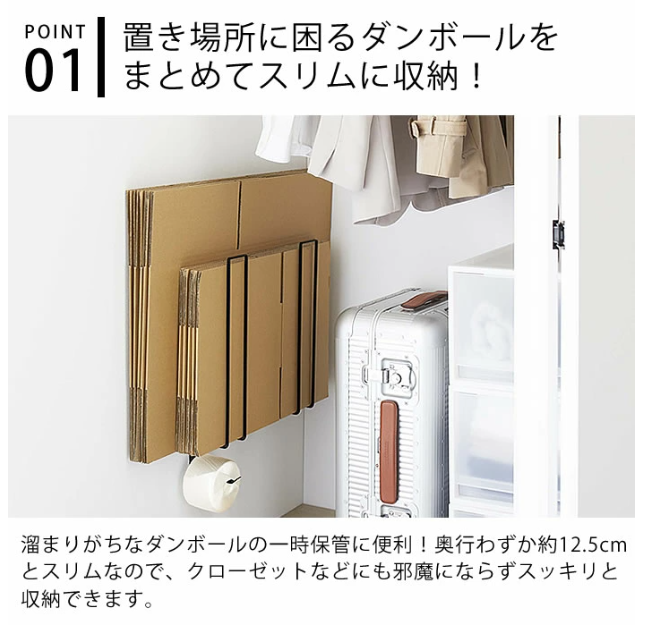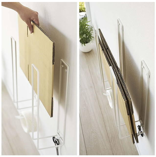 奥行わずか約12.5cmとスリムに収納できるウォール段ボールストッカー。