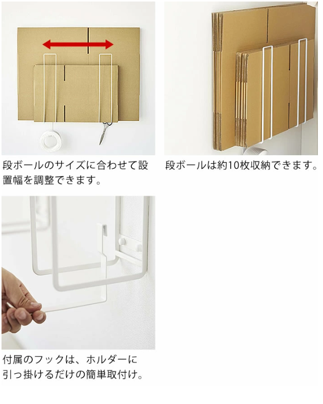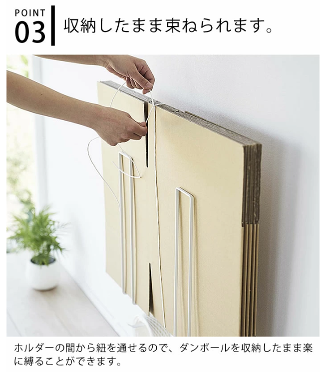 ダンボールが約10枚収納でき、そのまま紐で束ねることができるので便利です。