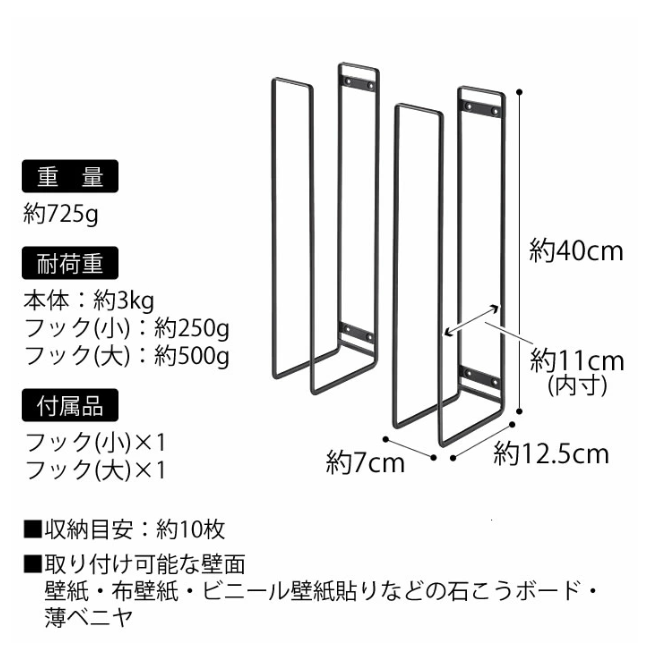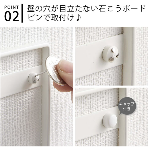 ※石こうボードピンで取り付ける場合には、取り付けできる平らな壁面へ垂直に取り付けてください。