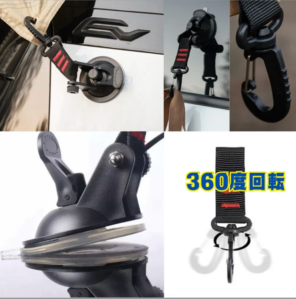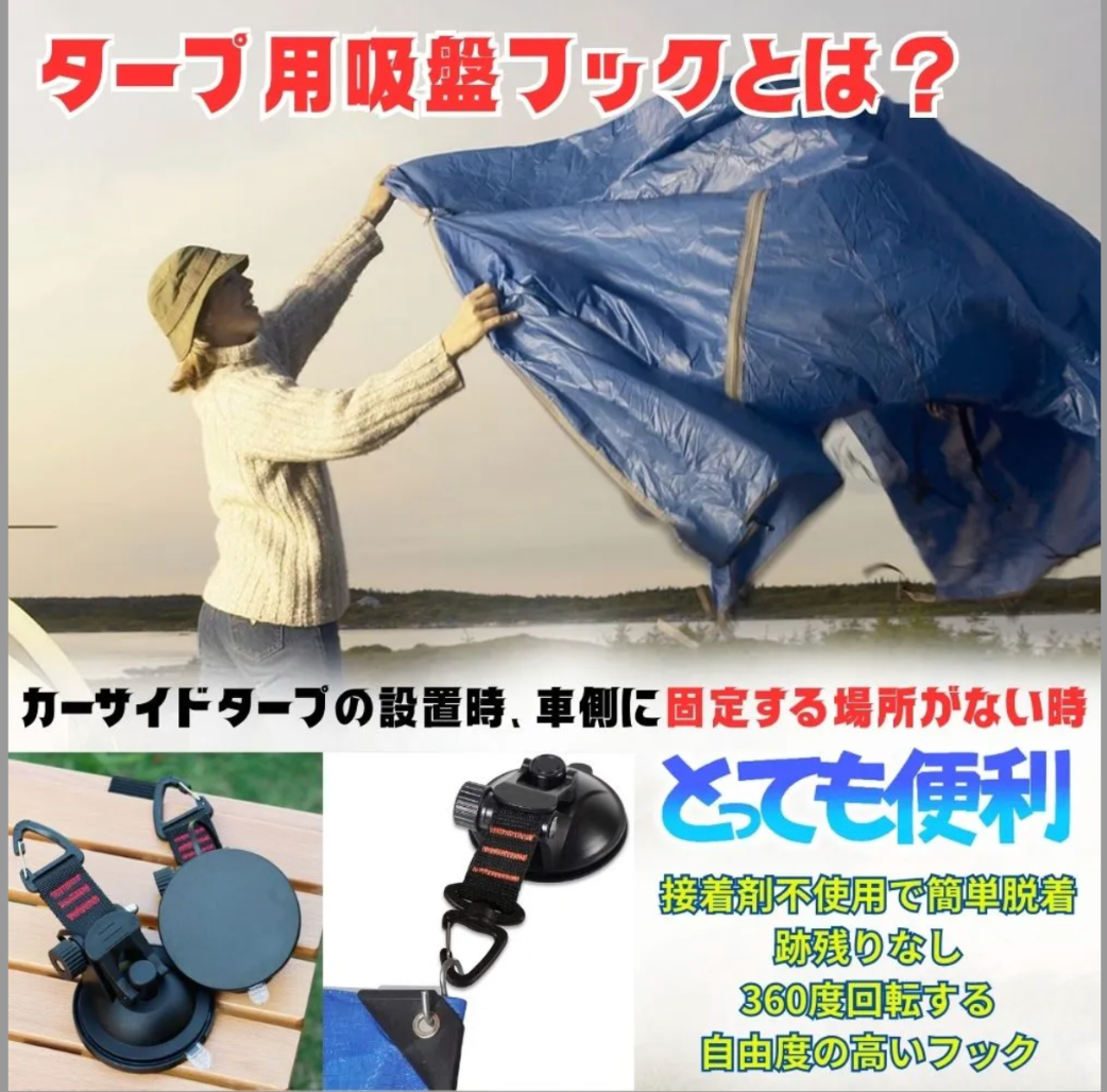 タープフック、吸盤フック、アウトドアフック、車用フック、サンシェードフック、固定フック、吸着フックなど、幅広いキーワードでお探しの方におすすめ。