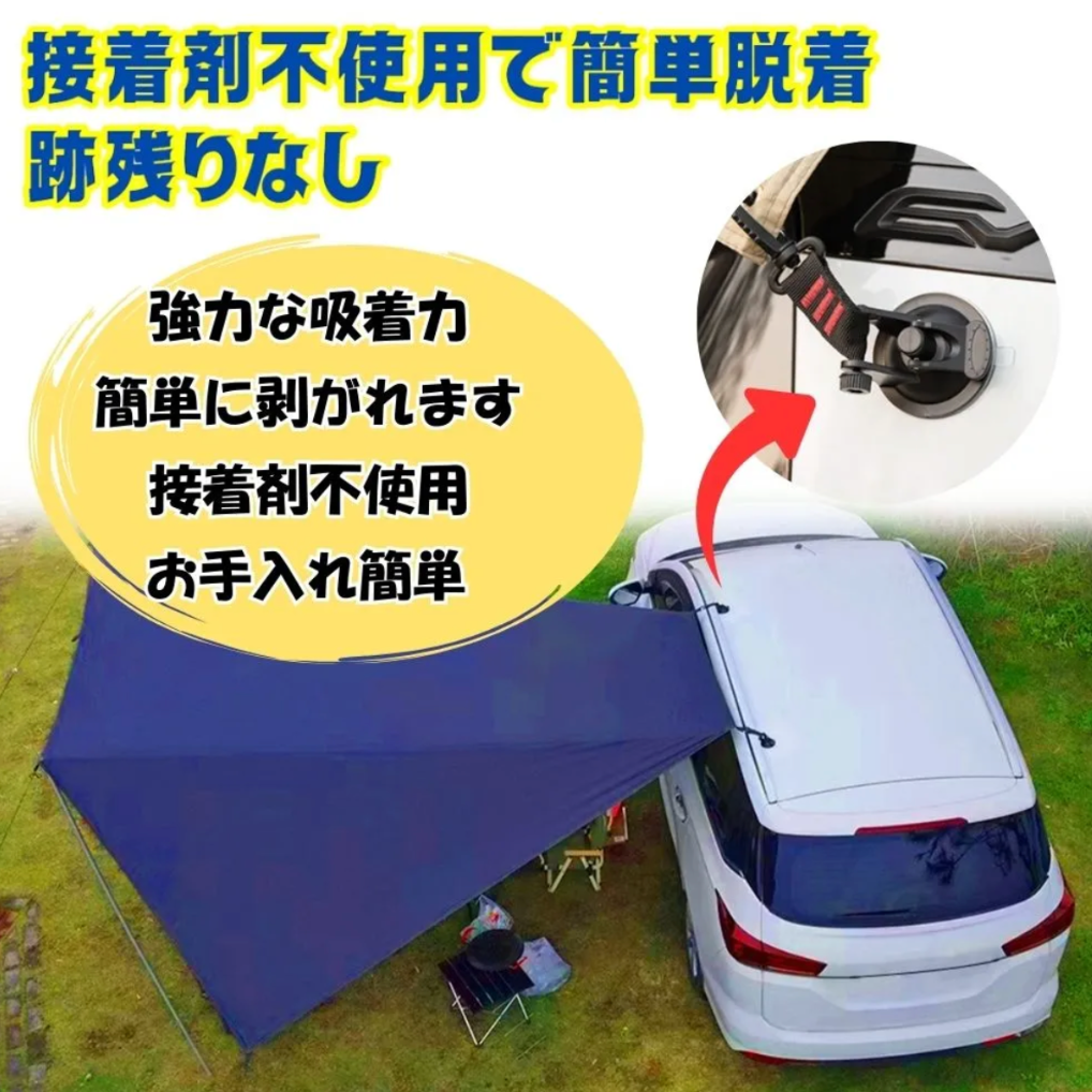 1個あたり耐荷重10kgの強力吸着力で、タープやサンシェード、テントをしっかり固定。工具不要で、誰でも簡単に設置・取り外しが可能です。