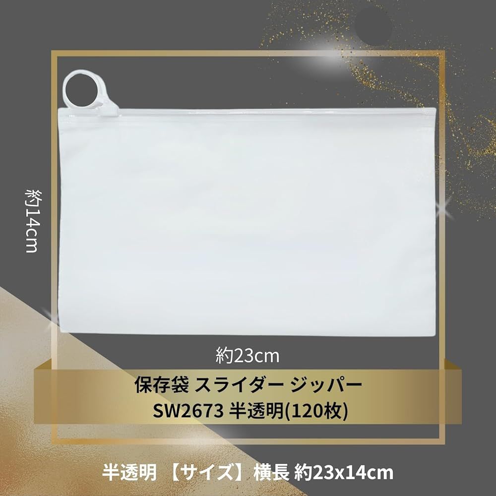 ガジェットをカバンに入れるときや、ご自宅で小物の収納にも大活躍します。 「主な仕様」【枚数】開閉サポートリング付きジップ袋 大容量 120枚 【サイズ】半透明 横長 約23x14cm
