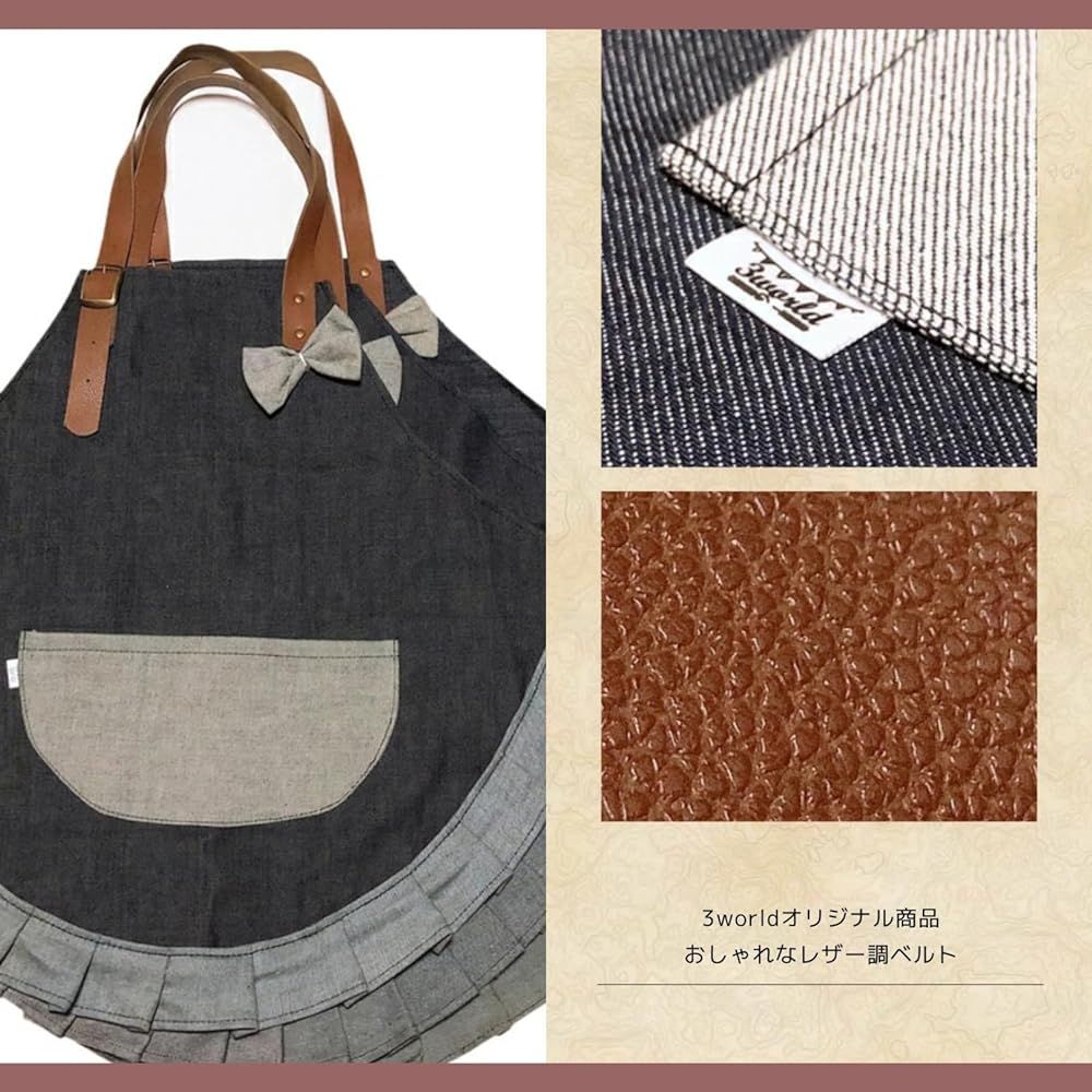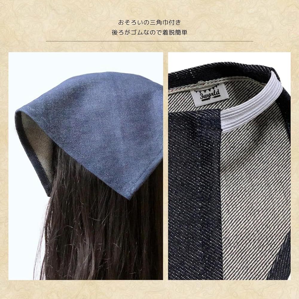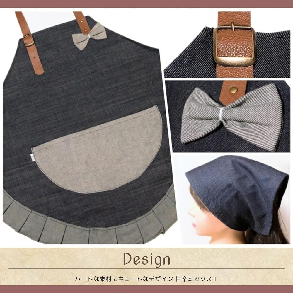 【素材】エプロン:耐久性のあるデニム生地とお洗濯可能で肌触りの良い合成皮革 三角巾:デニム製(ゴム式フリーサイズ)