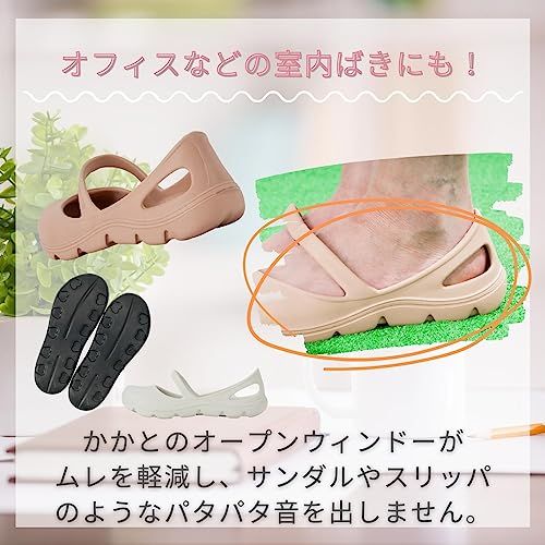 汚れたら水と中性洗剤で気軽に洗えるので清潔にお使いいただけます。「主な仕様」ふわっと軽〜いはきごこち!汚れや水濡れに強く、らくらくサンダル感覚で履けます。