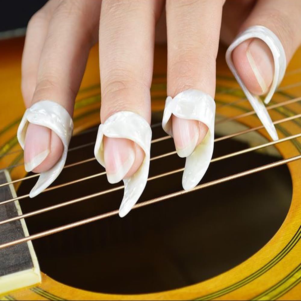 5.【幅広い用途】フィンガープレクトラムは、エレキギター、アコースティックギター、クラシックギター、ベース、バンジョー、ウクレレなど、様々な楽器に使用することができます。 あなたの様々なギター演奏のニーズを満たすことができ、どれも信頼性が高く頑丈で、ギター初心者、プレーヤー、プロフェッショナルに適しています。