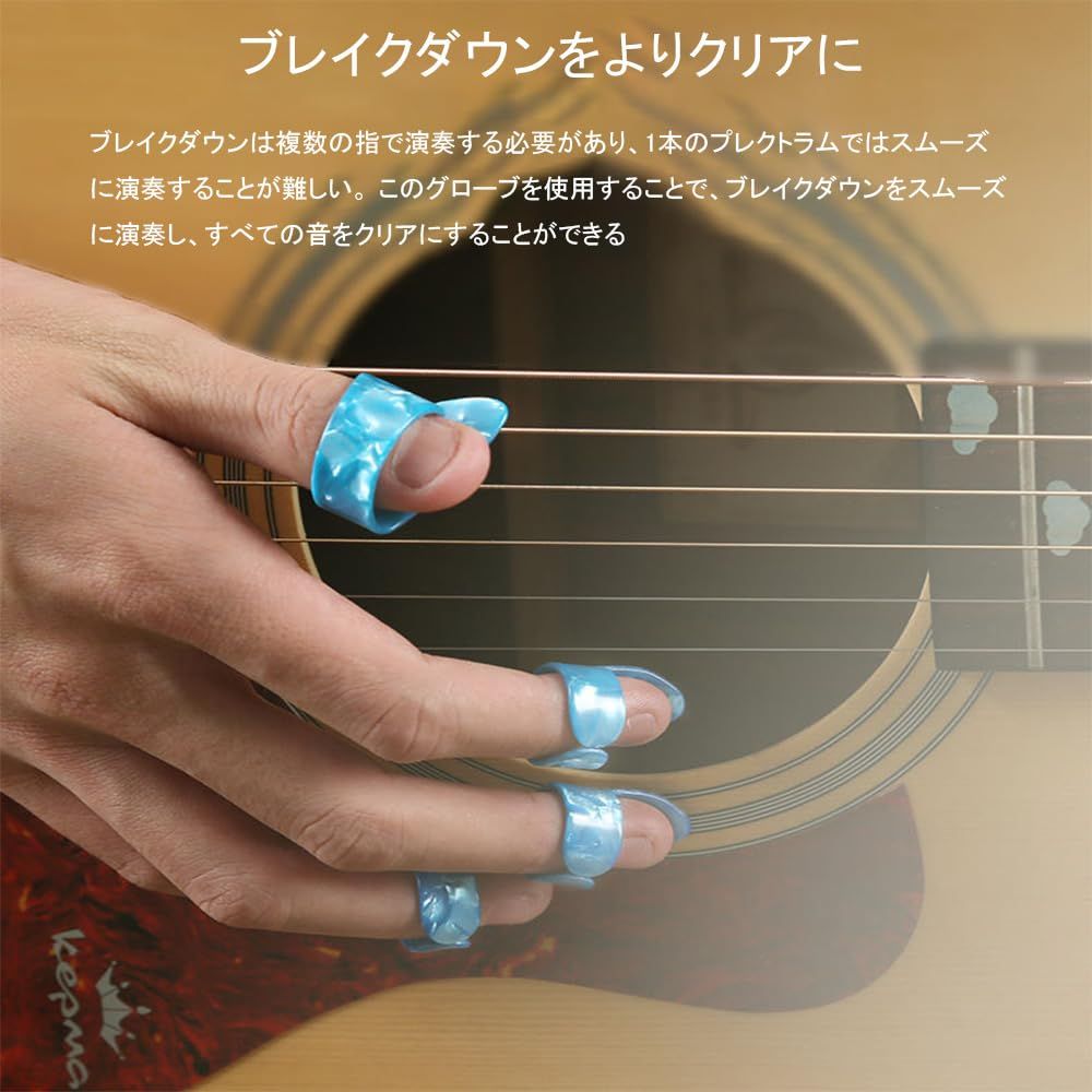 1.【製品の内容です】8個セット、親指ピック2個、人差し指ピック6個。親指ピック、約17×32mm(長さ×幅)。人差し指ピック、約18×26mm(長さ×幅)、2カラー。 2.【高品質素材】摩耗や型崩れが少なく、安定した音色を長く楽しめる素材を使用しています。 3.【心地よいトーン】ギターフィンガーピック 、長時間の練習や演奏によるや痛みから指を効果的に取り除きます。指を痛みや汗から保護し、音をより豊かでリアルにします。温かみのある音色のレスポンスとコントロールをすべての演奏者にに提供します美しい音色とパフォーマンスの柔軟性を保証します。 4.【フィット感抜群】正常指のサイズに設計されており、親指や人差し指にフィット。長時間の練習でも指を傷つけないように保護し、効率を向上させることができます。 5.【幅広い用途】フィンガープレクトラムは、エレキギター、アコースティックギター、クラシックギター、ベース、バンジョー、ウクレレなど、様々な楽器に使用することができます。 あなたの様々なギター演奏のニーズを満たすことができ、どれも信頼性が高く頑丈で、ギター初心者、プレーヤー、プロフェッショナルに適しています。