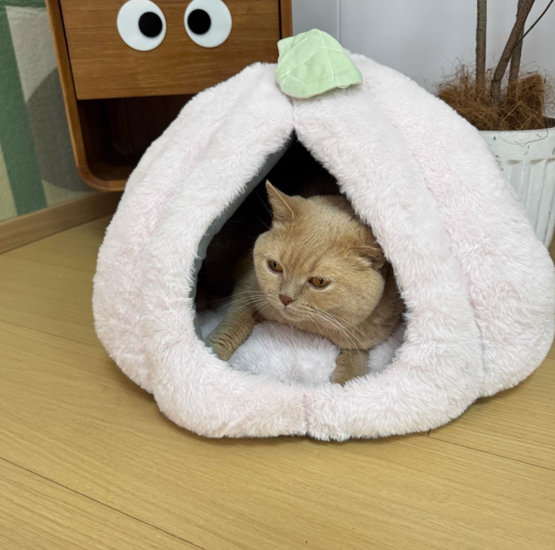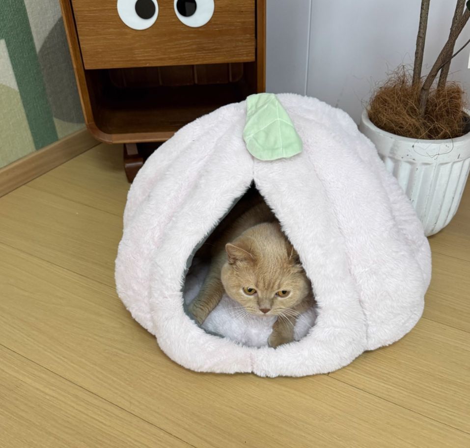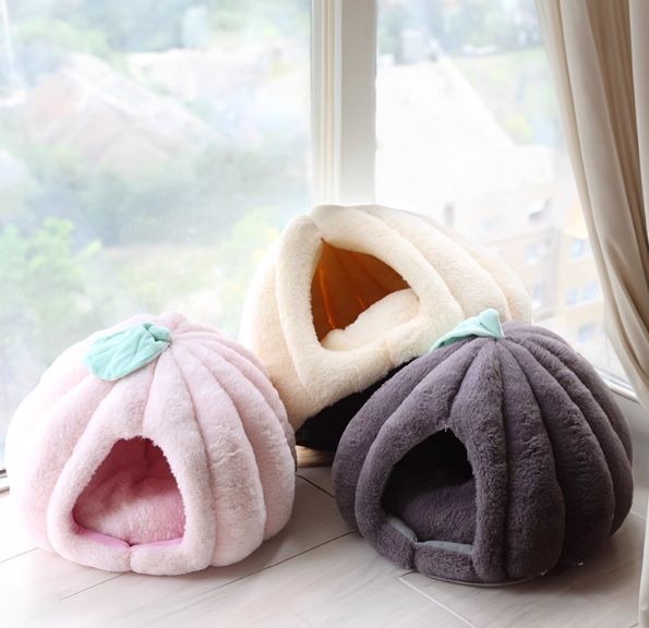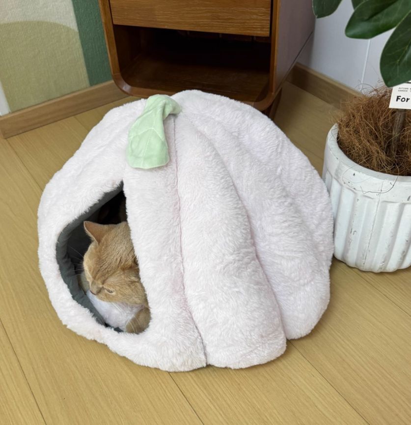 【保温防寒設計】 猫、小型犬などの小動物向けのドーム型のペットベッド。