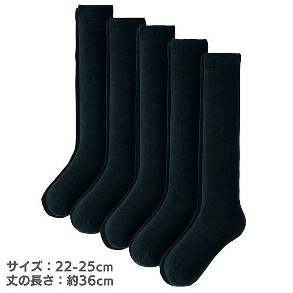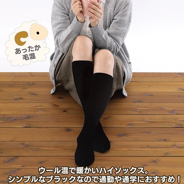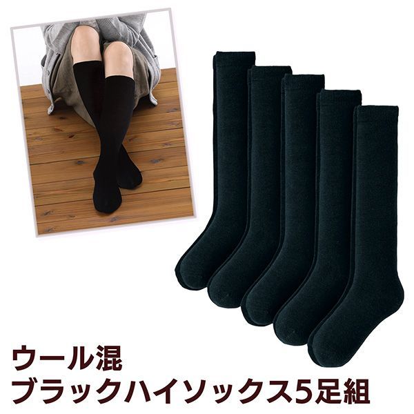 【新品正規品/5足セット】ウール混 ブラック ハイソックス 5足組 3222150 黒 通勤 通学 シンプル 暖かい 毛混 三笠 MIKASA