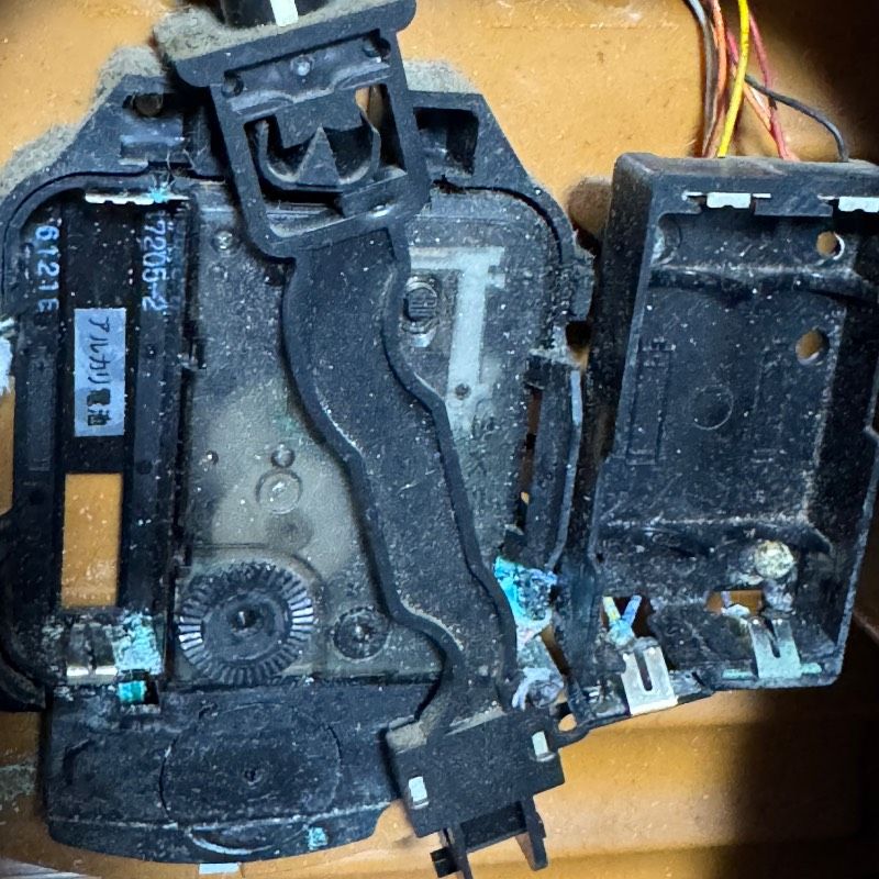 ・**電池ボックスの腐食:**電池端子部分に激しい液漏れ跡、青錆(緑青)が発生しており、通電していない可能性が高いです。