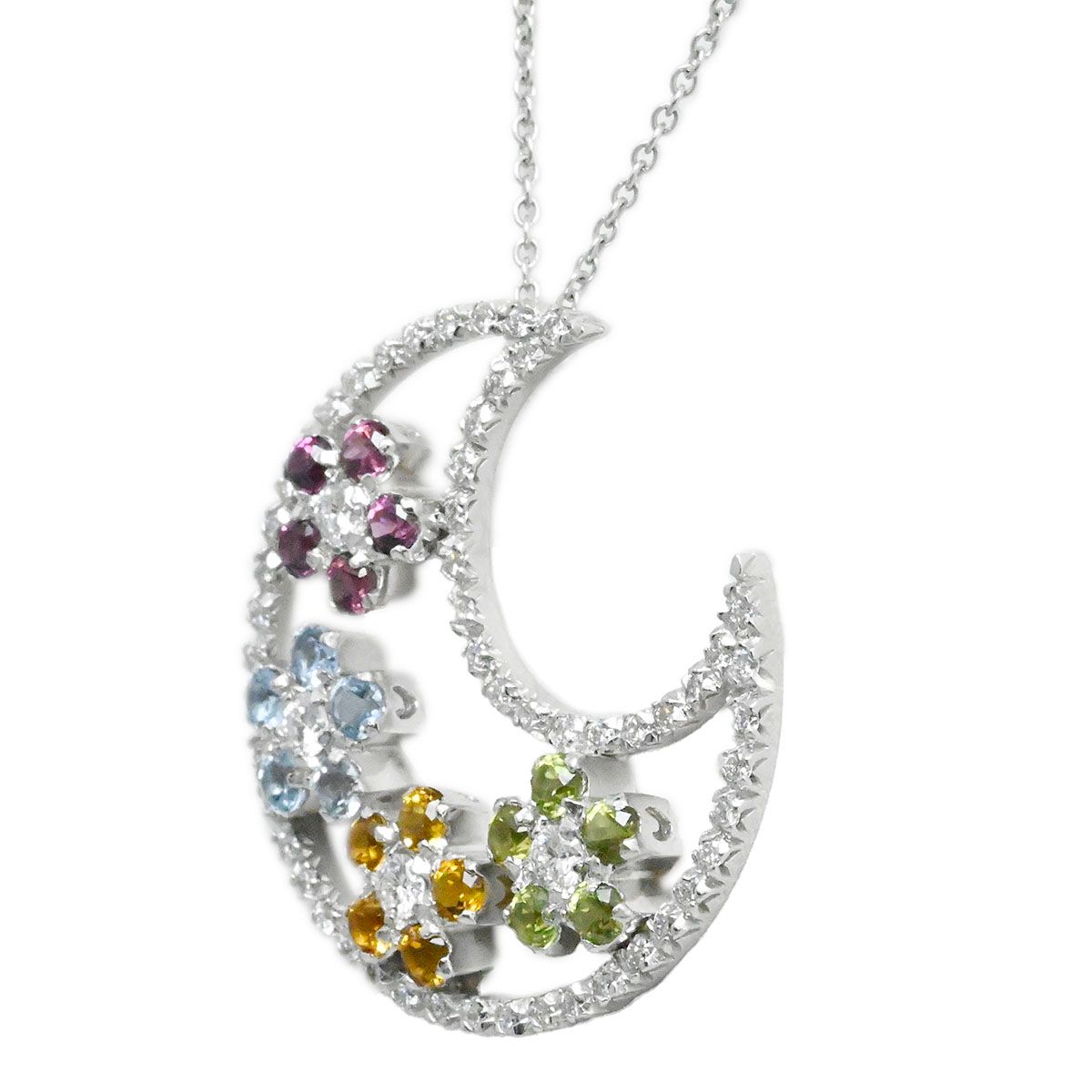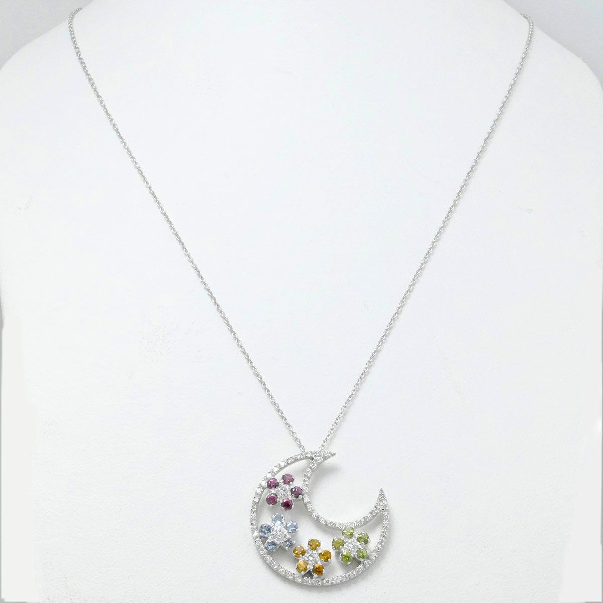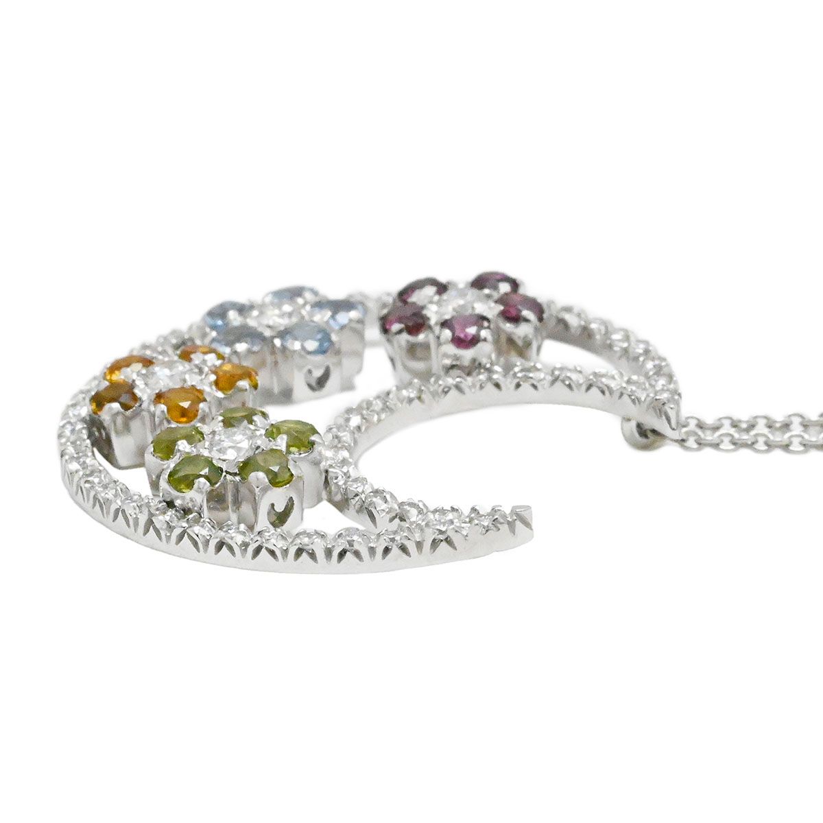 ムーンデザインにダイヤが施された枠に色とりどりのフラワーモチーフマルチカラーストーンが胸元を鮮やかに飾ってくれるゾッカイのエレガントなネックレスです。