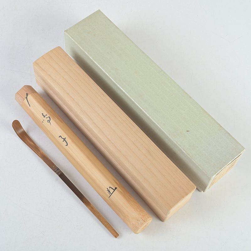 茶道具 宗竹作 茶杓 前大徳福本積應書付 銘「鳴子」 共筒共箱 C S348